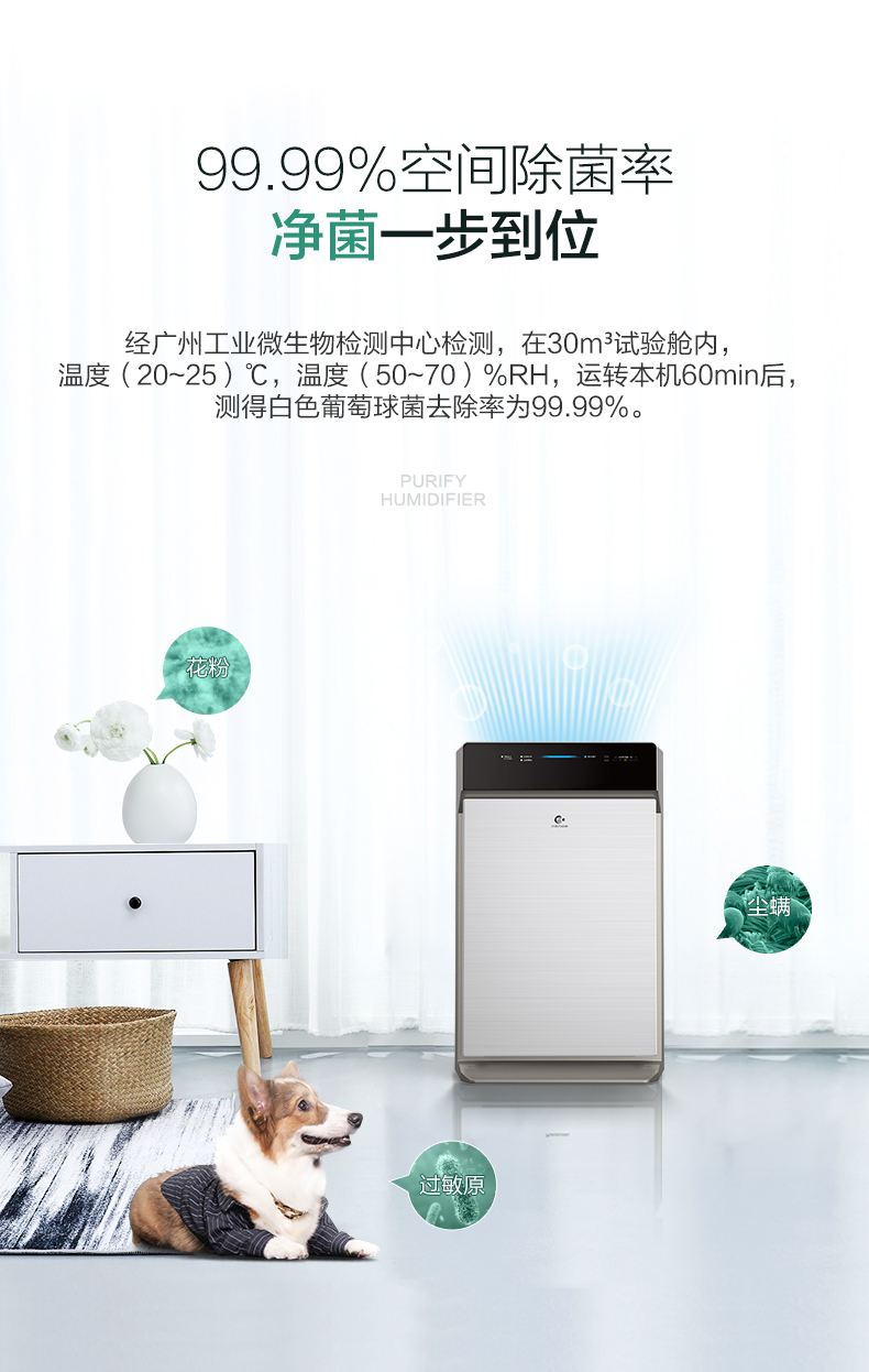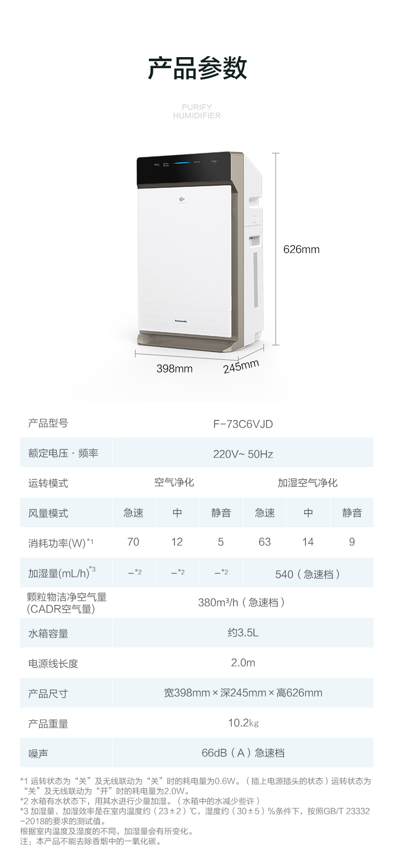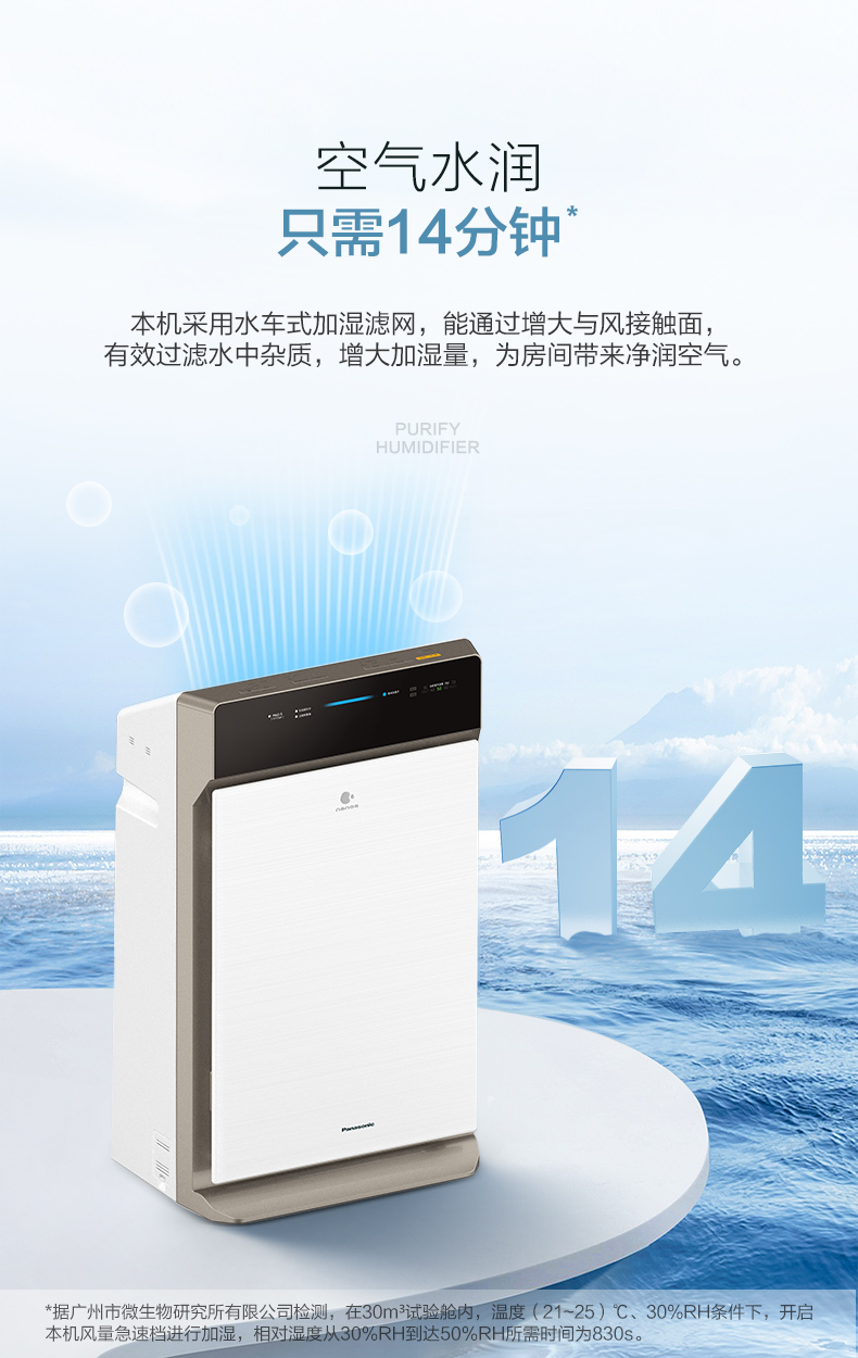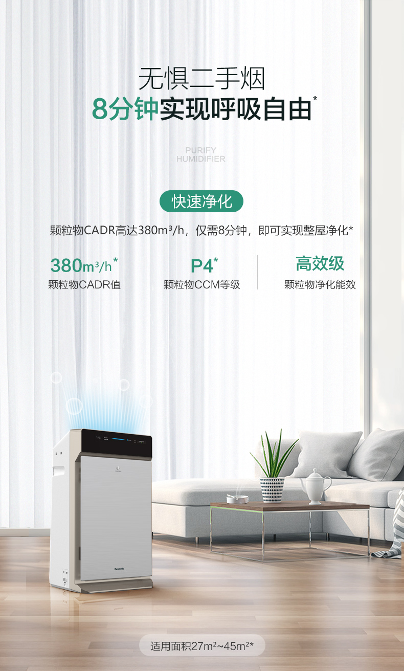松下 (Panasonic)除甲醛空气净化器家用 除菌加湿除雾霾 纳米水离子 京鱼座智能生态产品 F-73C6VJD-S