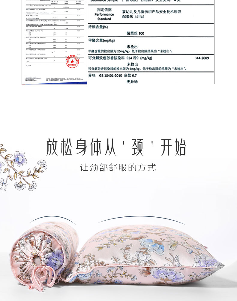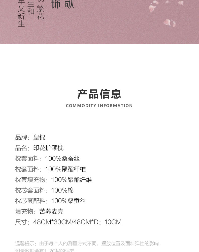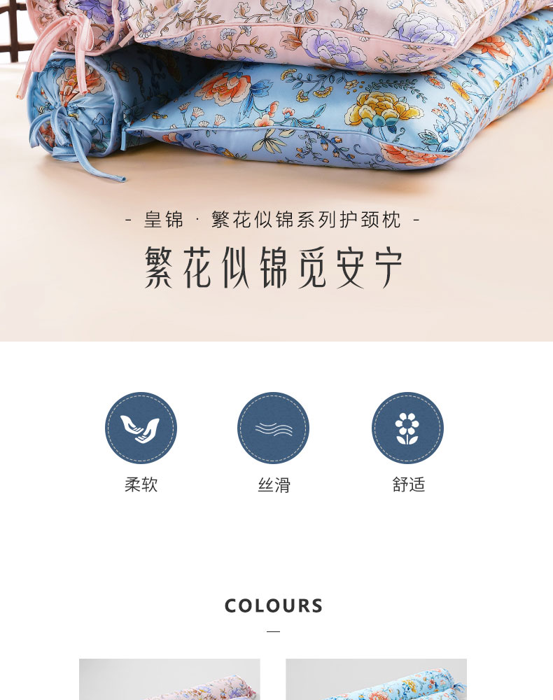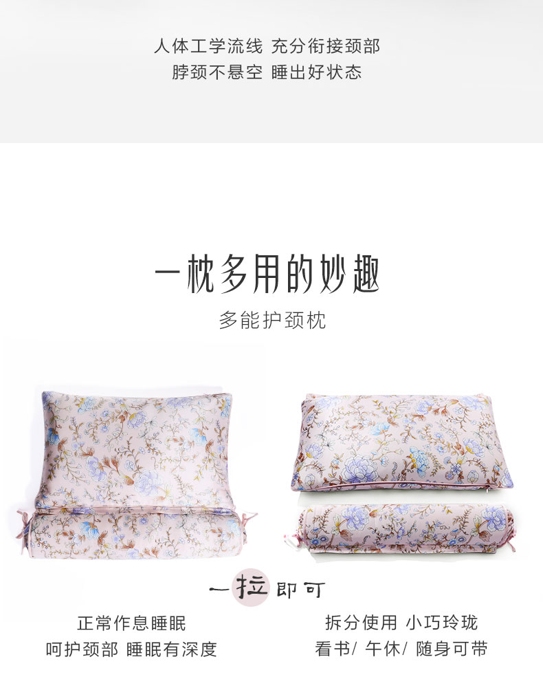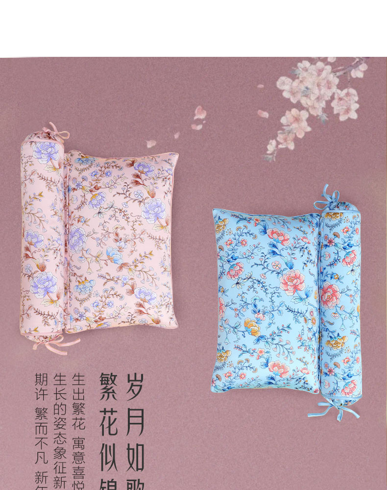【皇锦】繁花似锦·桑蚕丝枕头护颈椎真丝荞麦枕