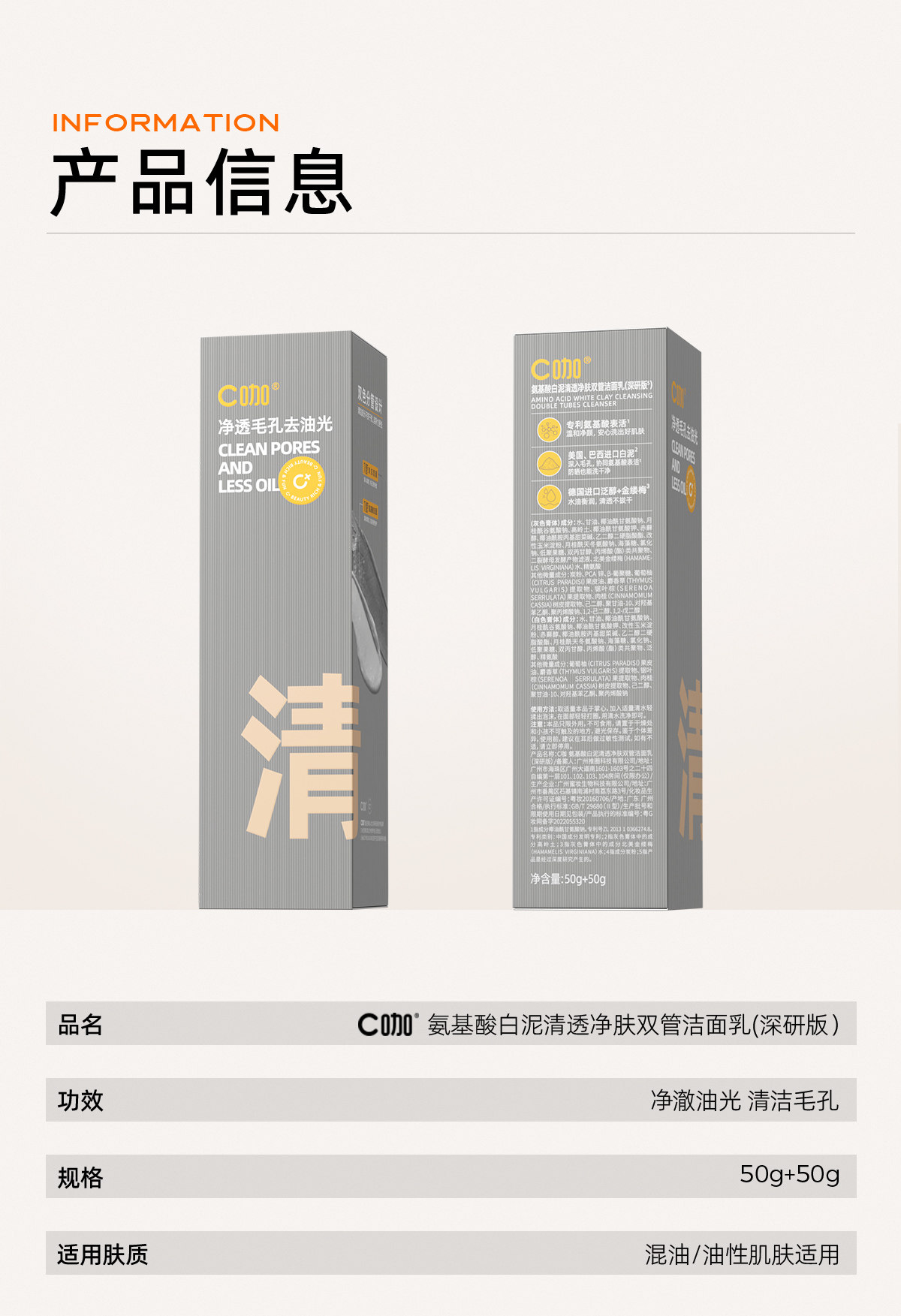 C咖 氨基酸白泥清透净肤双管洁面乳50g+50g