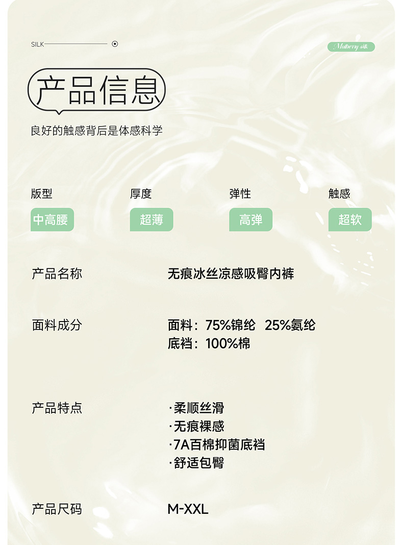 洁丽雅大码无痕冰丝凉感高腰内裤亲肤柔软7A双层抑菌纯棉裆舒适包臀三角裤