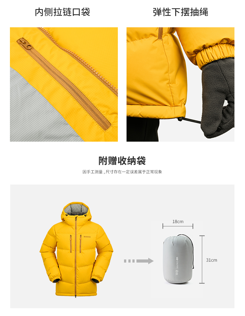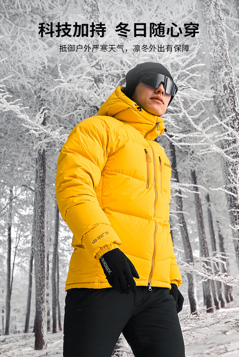 黑冰抗寒户外男款防风保暖连帽羽绒服800蓬松鹅绒8528