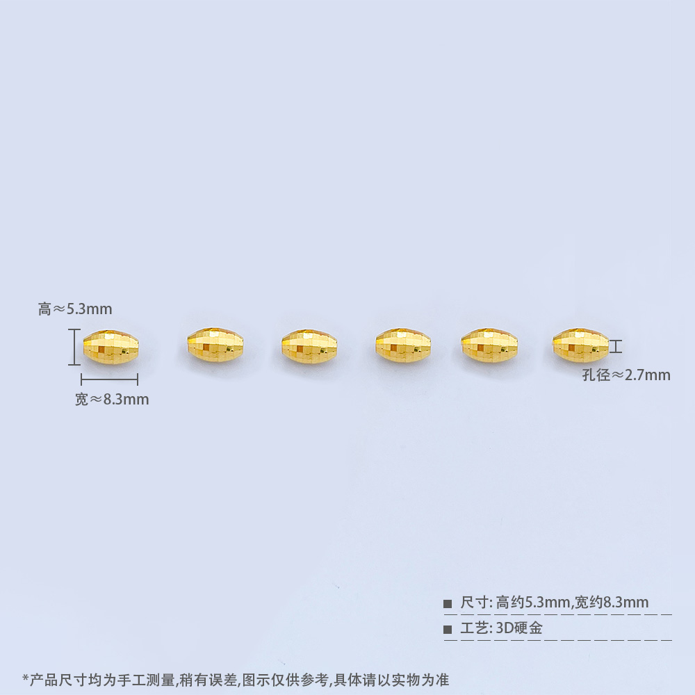 【限时克减150元】足金 【无字印】3D硬金散珠转运珠镭射珠橄榄珠路路通手串配件(6粒总长约5cm,6粒/件)(V3DSC00332)(预售产品下单后不退款不退货不换货不补差价)