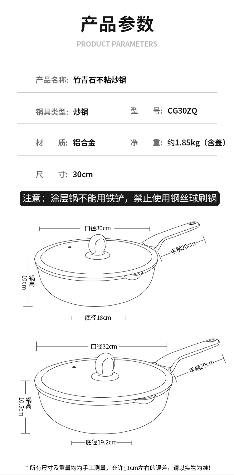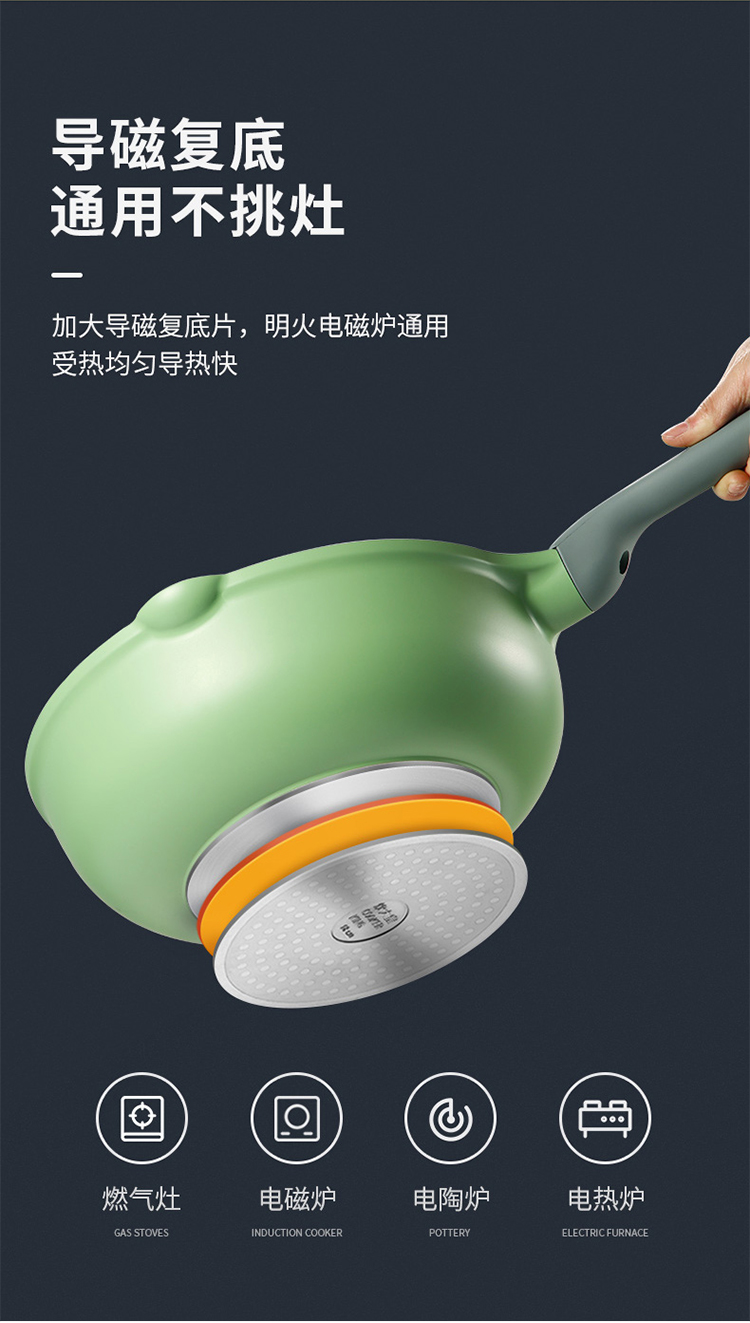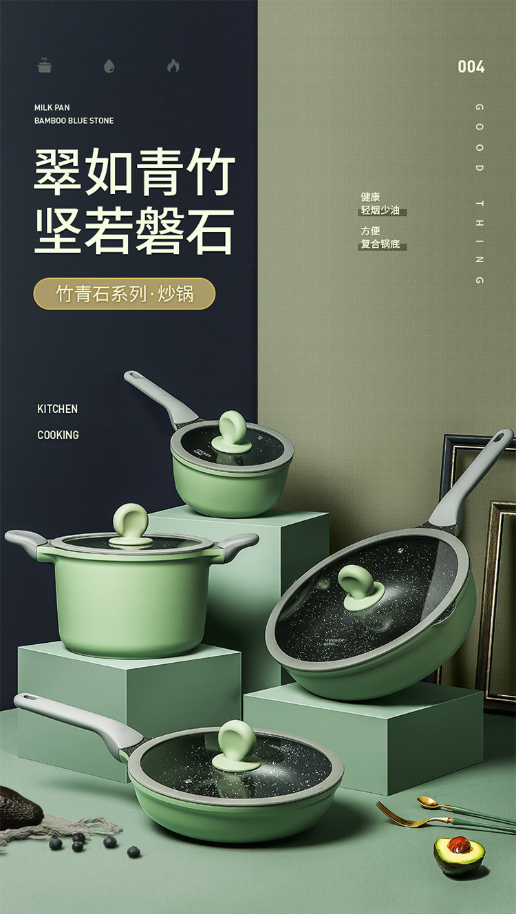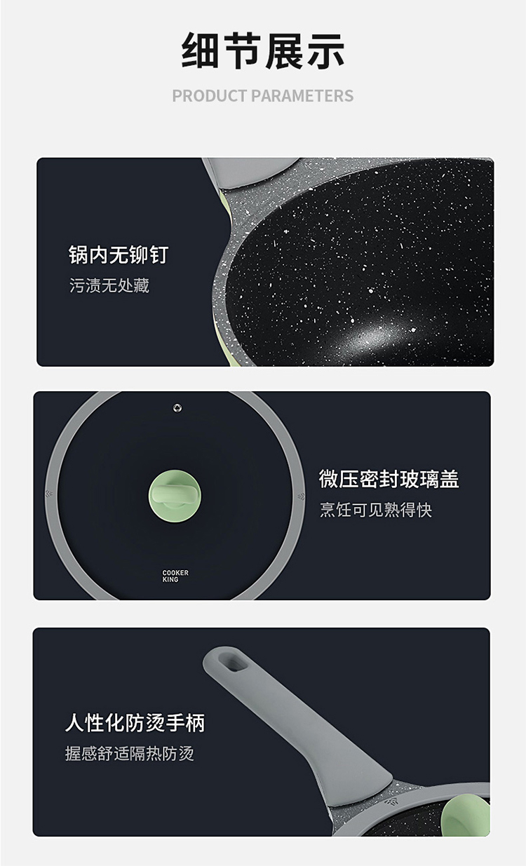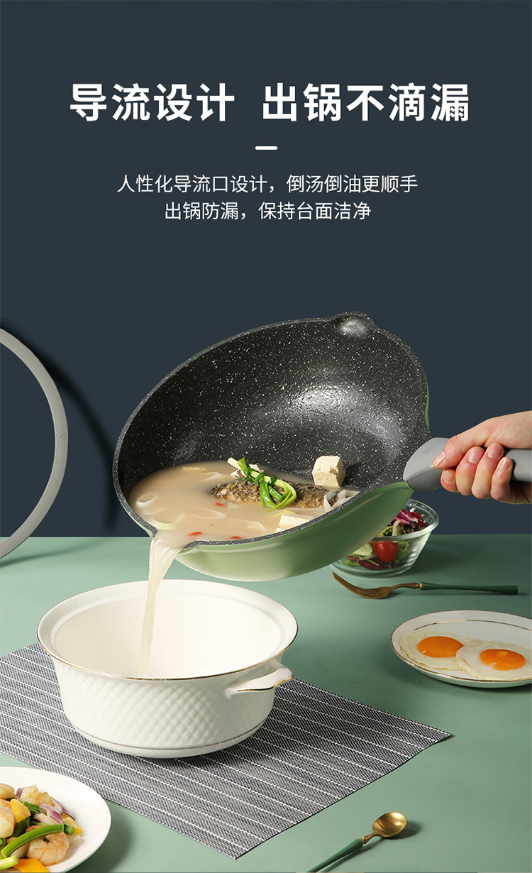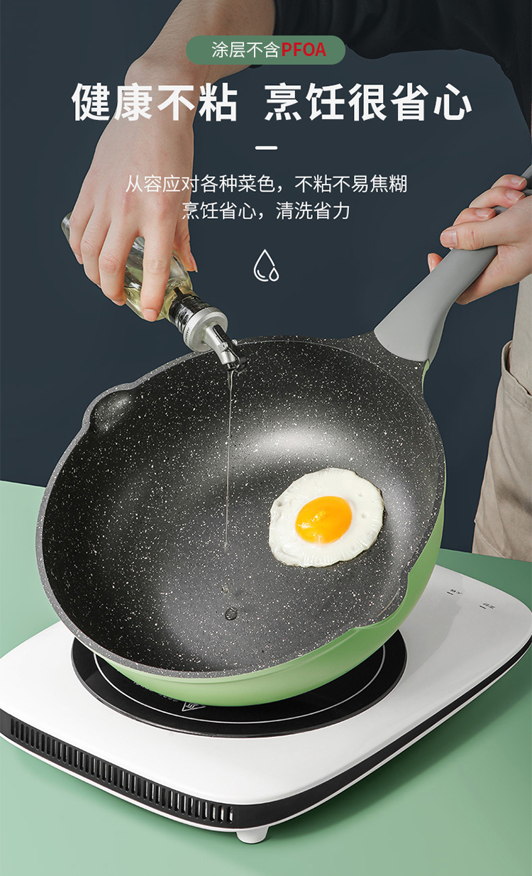 炊大皇不粘锅30cm炒锅麦饭石色家用炒菜锅平底炒锅具电磁炉燃气煤气灶明火通用竹青石系列CG30ZQ YR