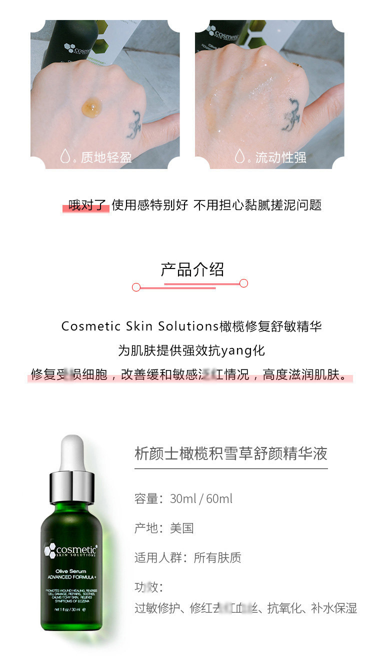CSS析颜士橄榄积雪草舒颜精华液30ml CSS色修精华30ml 抗氧化褪红祛痘
