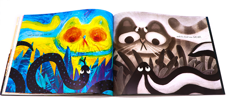 有只猫满世界溜达,长胡子、竖耳朵、毛绒爪……小朋友看见了一只猫、金鱼看见了一只猫、蝙蝠看见了一只猫,对,他们都看见了一只猫。当你看见了一只猫的时候,你到底看见了什么?你眼里的猫和故事中那只到处溜达的猫一样吗?