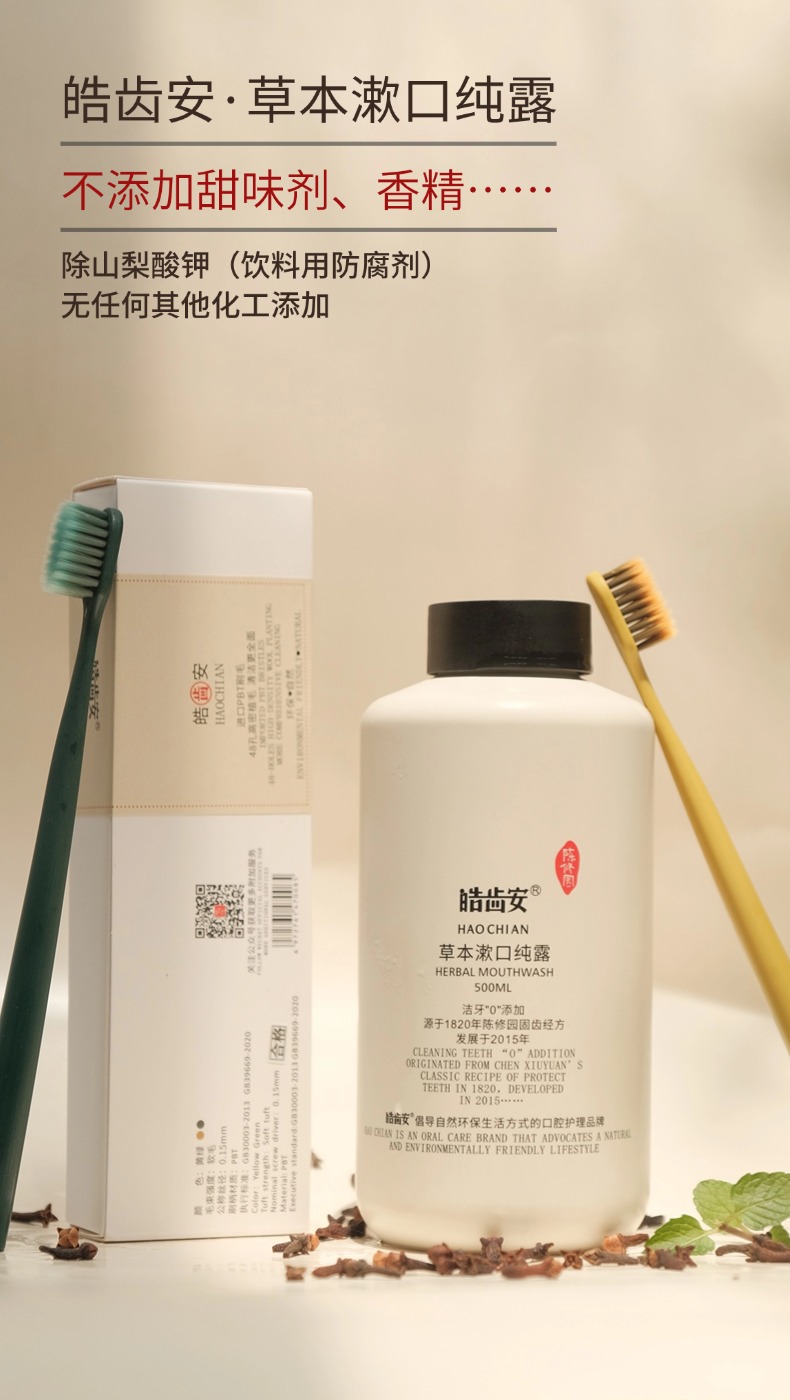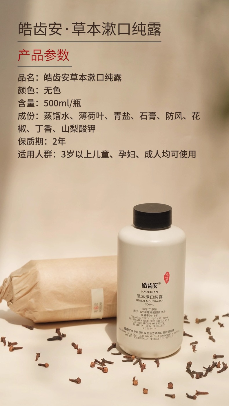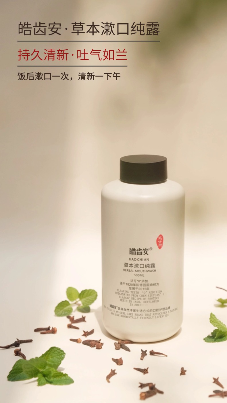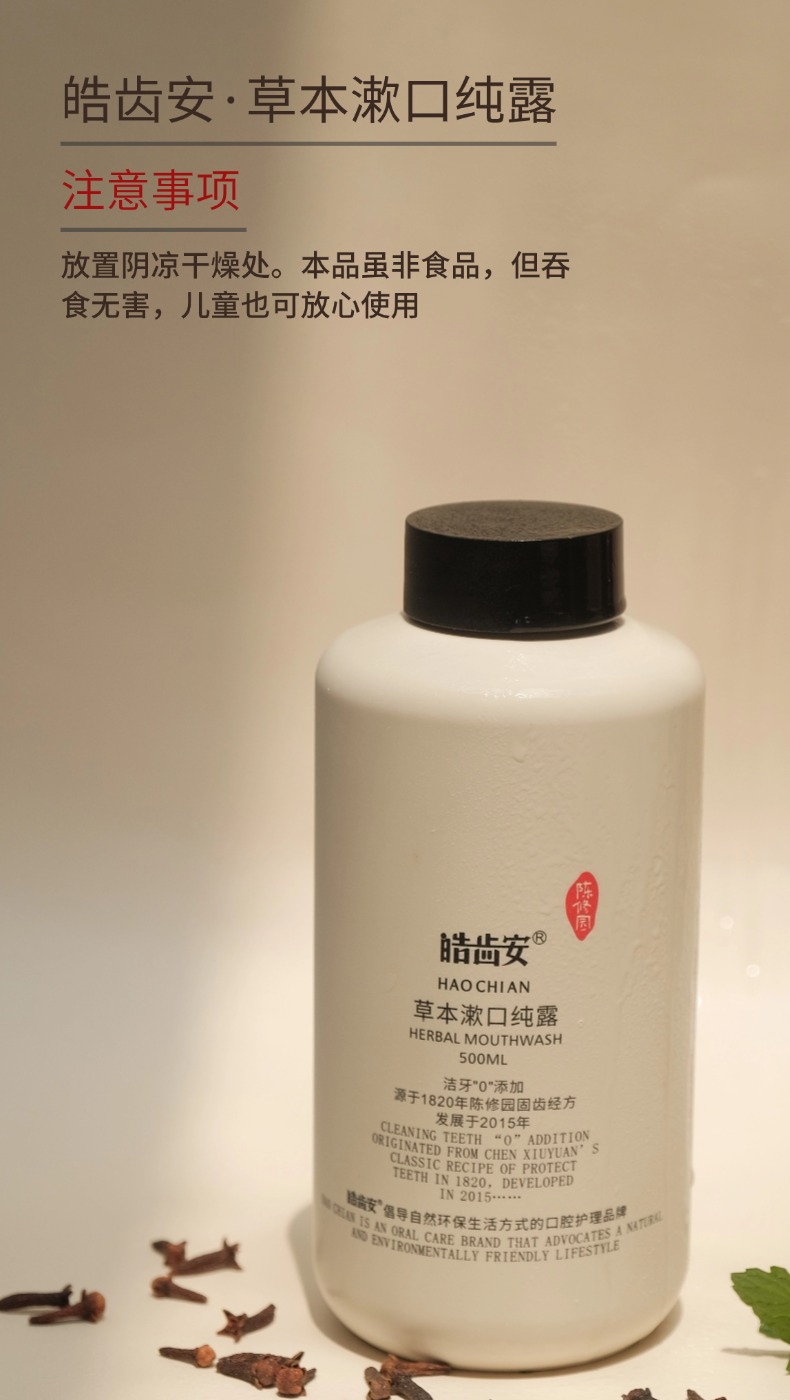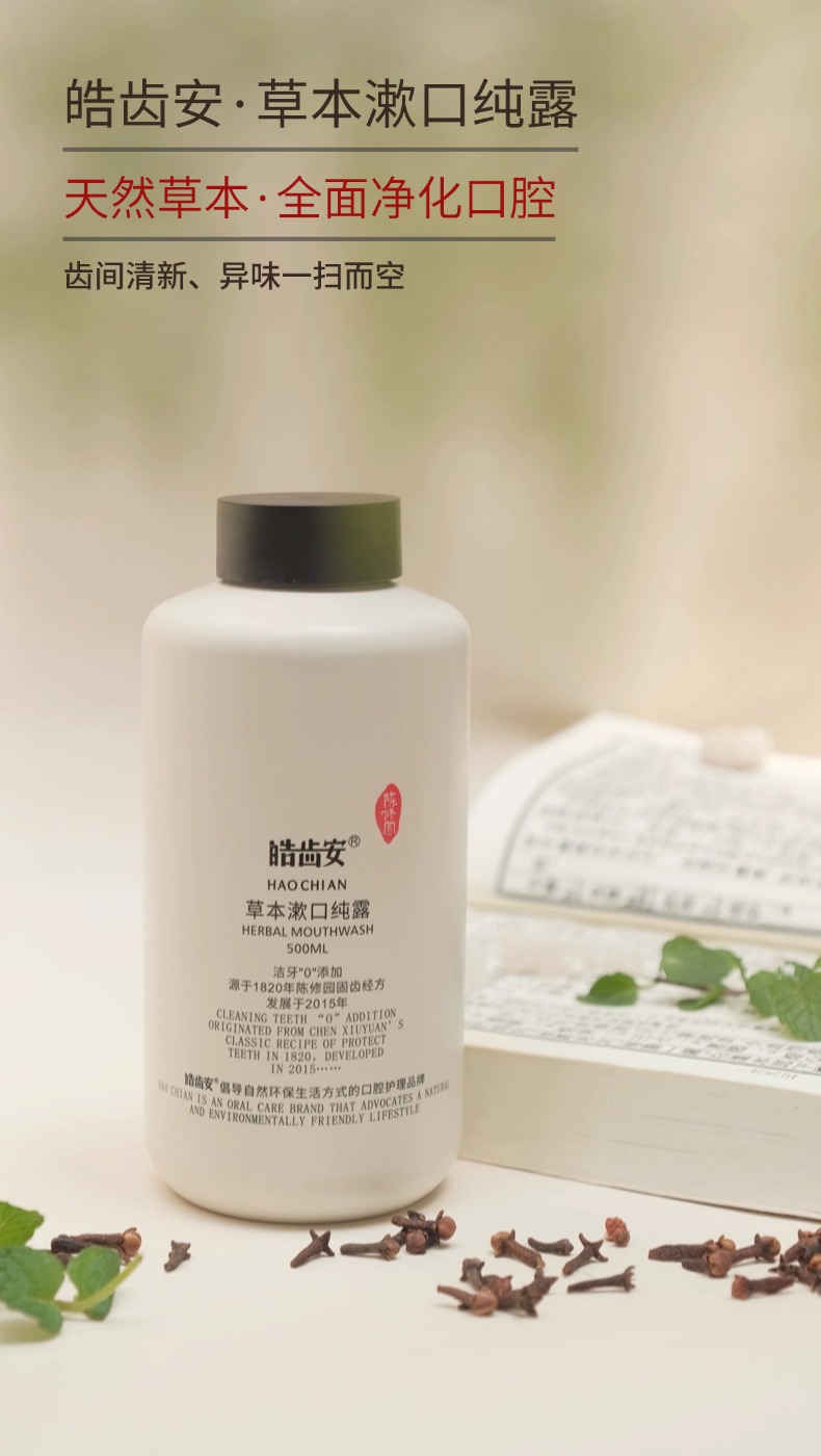 陈修园 草本漱口纯露 拒绝甜味剂香精 6答本草成分 漱口水 500ml/瓶