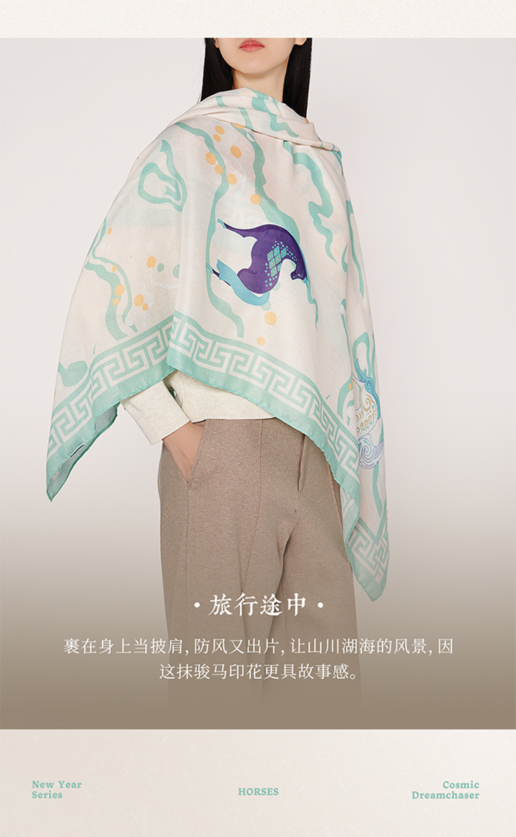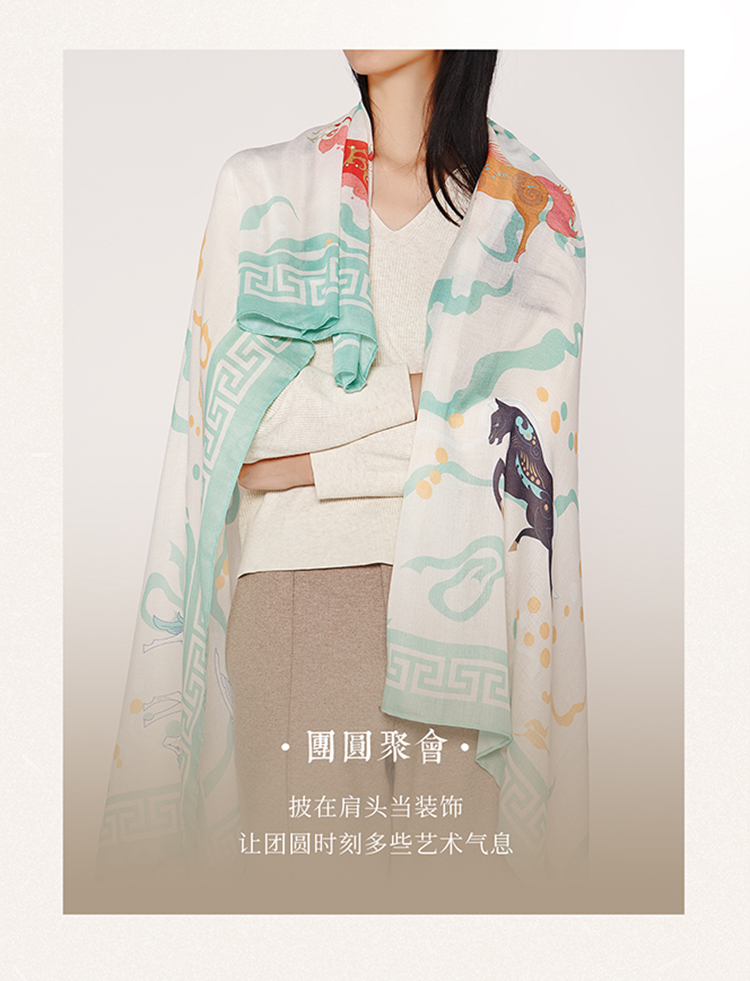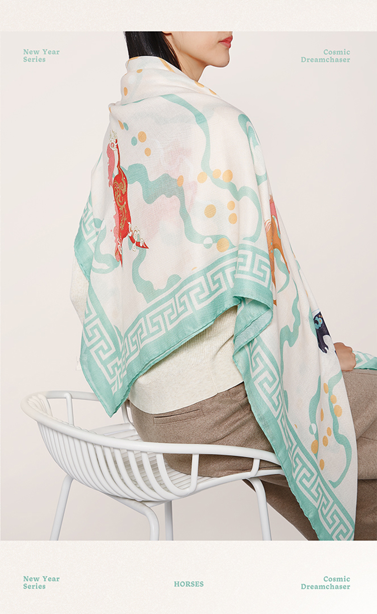 大英博物馆 新年系列 以梦为马印花 披肩围巾