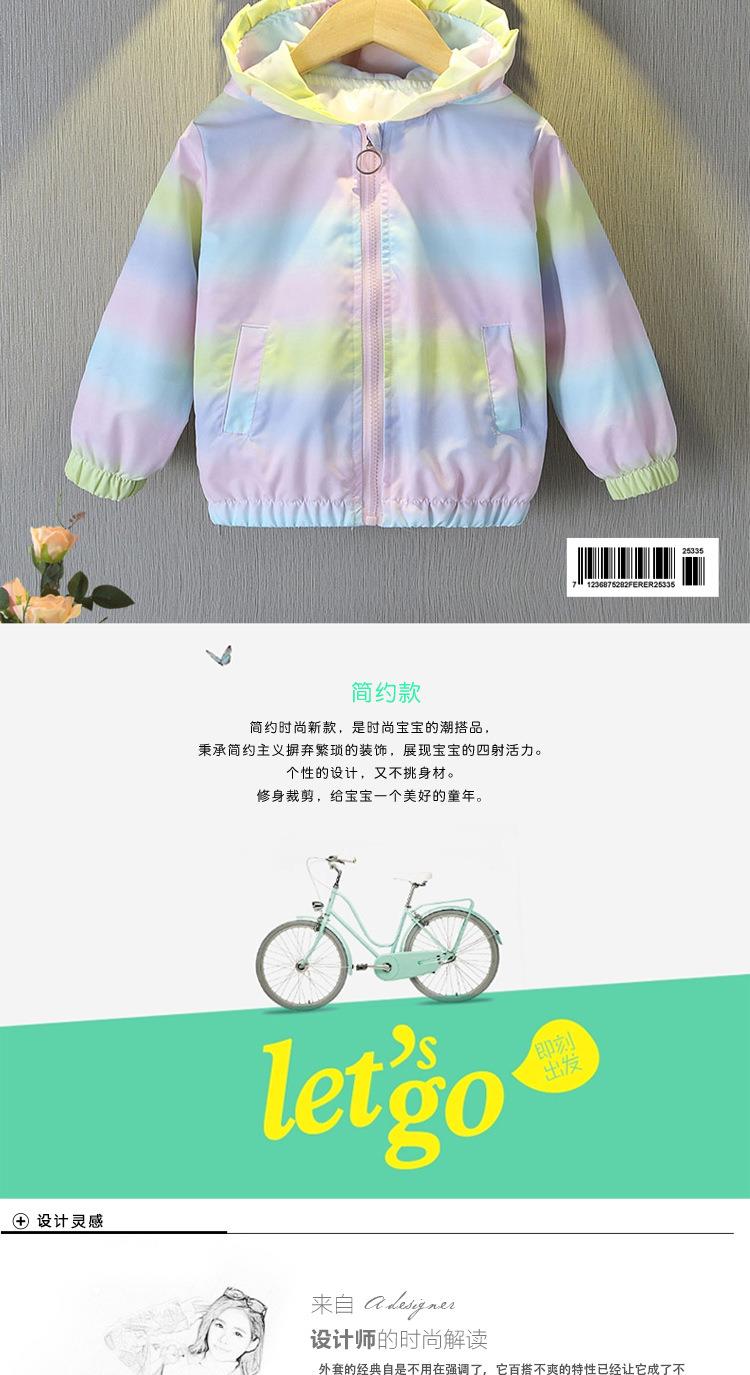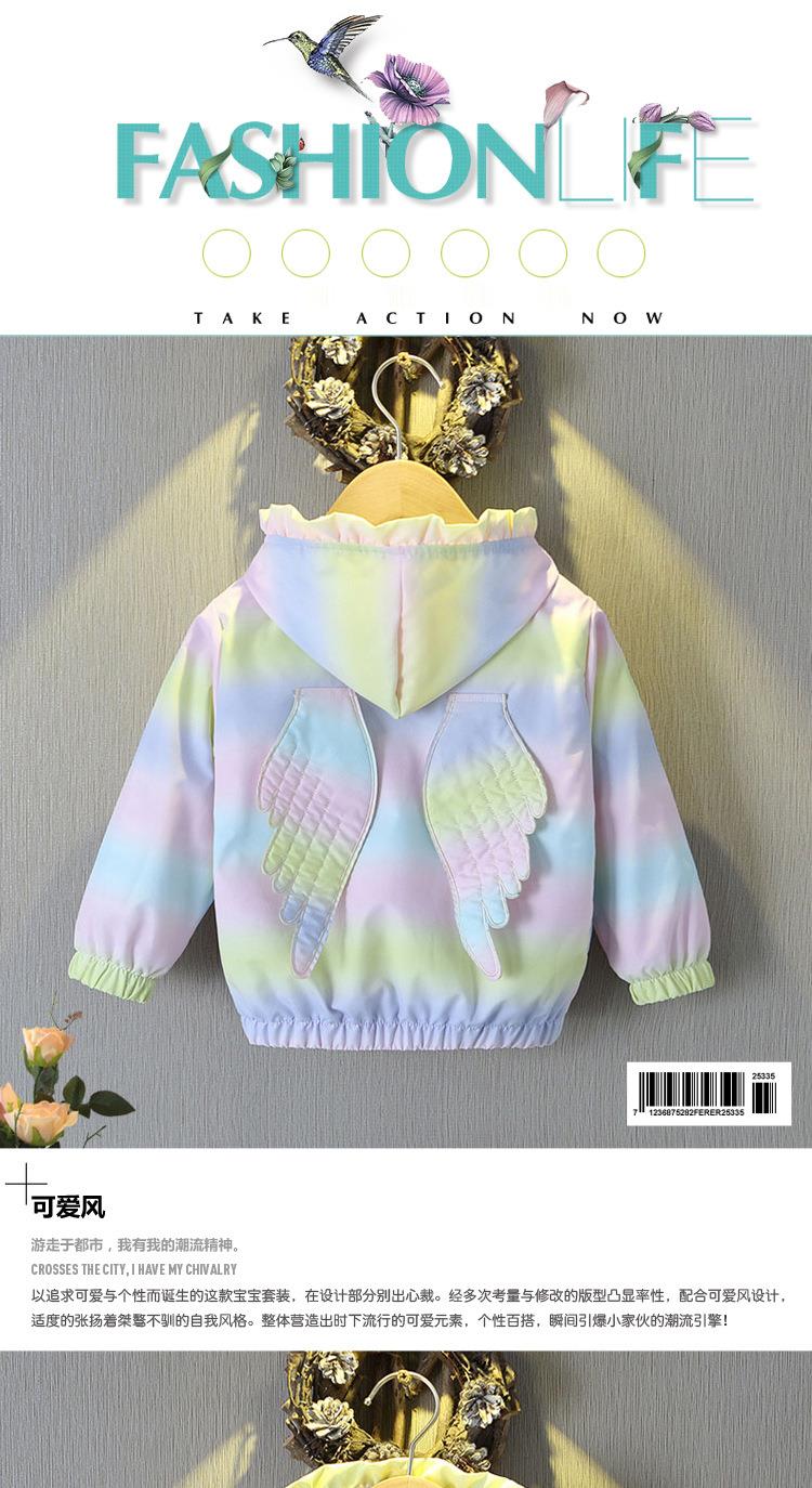 女童连帽翅膀风衣2024春秋新款中小儿童休闲服渐变色韩版外套春装