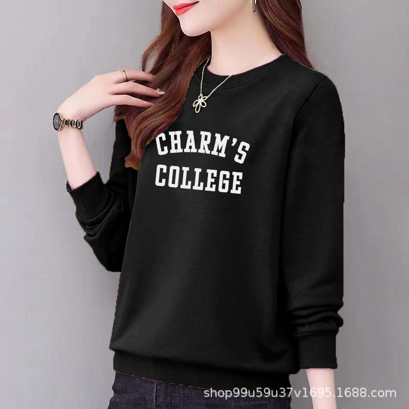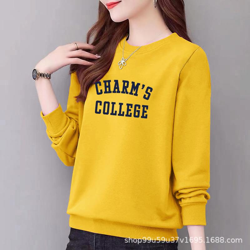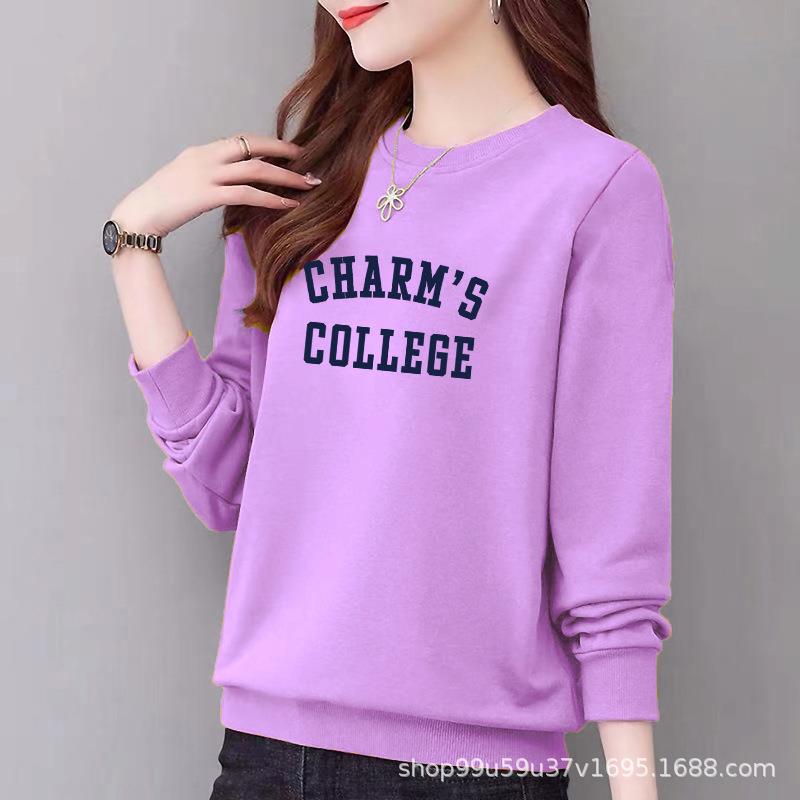 卫衣女式97%棉圆领休闲时尚宽松外套上衣字母印花运动衣显瘦
