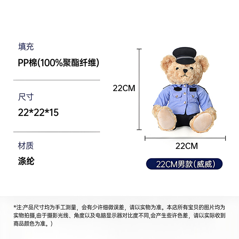 【坐姿蓝衬熊威威22cm】毛绒公仔玩具毛绒小熊玩偶布娃娃送礼礼品礼物