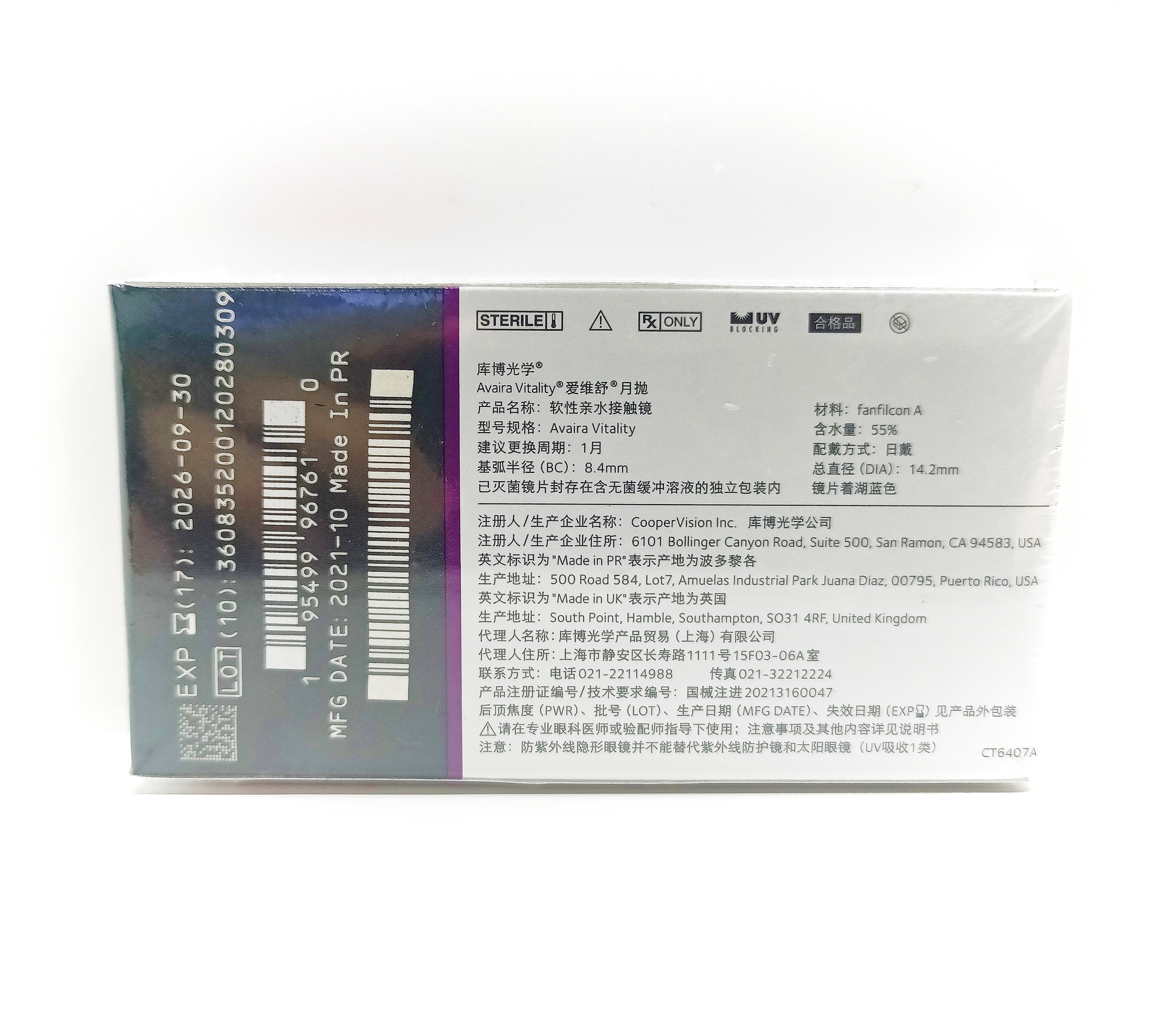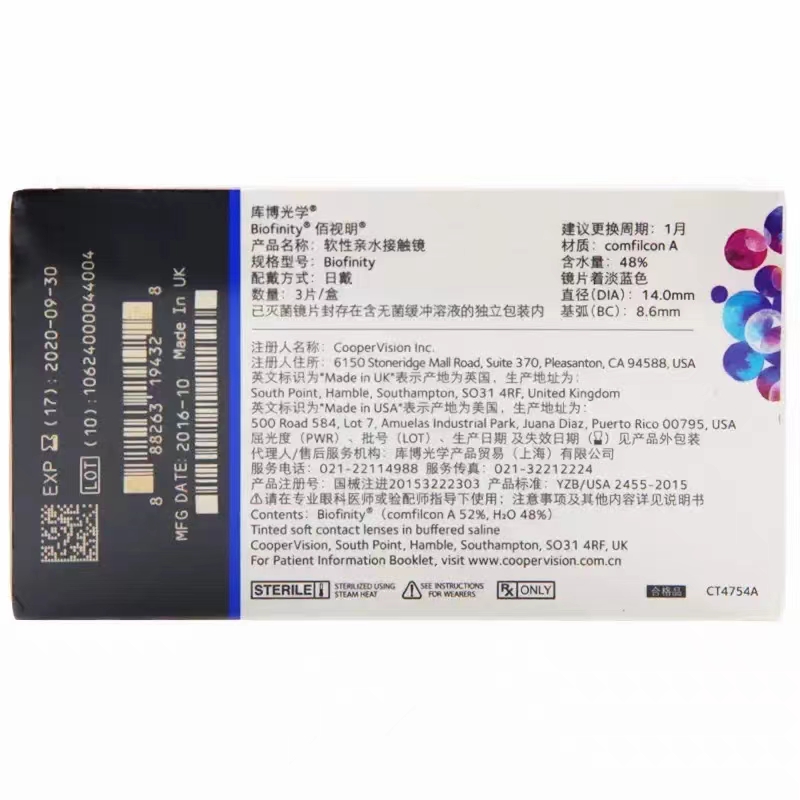 库博光学爱维舒月抛硅水凝胶透明镜片3片,6片装