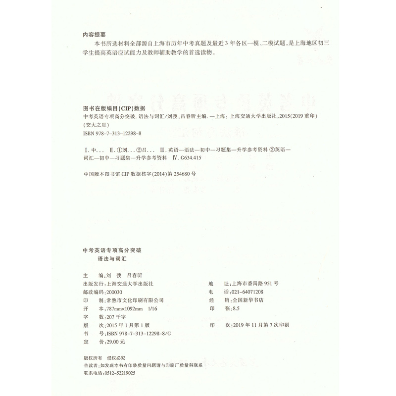 交大之星 中考英语专项高分突破 语法与词汇 全新正版 中小学英语教辅