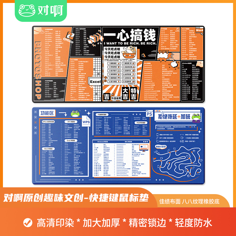 【对啊文创鼠标垫】对啊原创趣味文创快捷键鼠标垫高清印染加大加厚精密锁边轻度防水