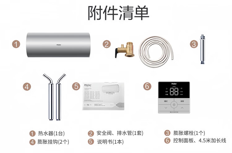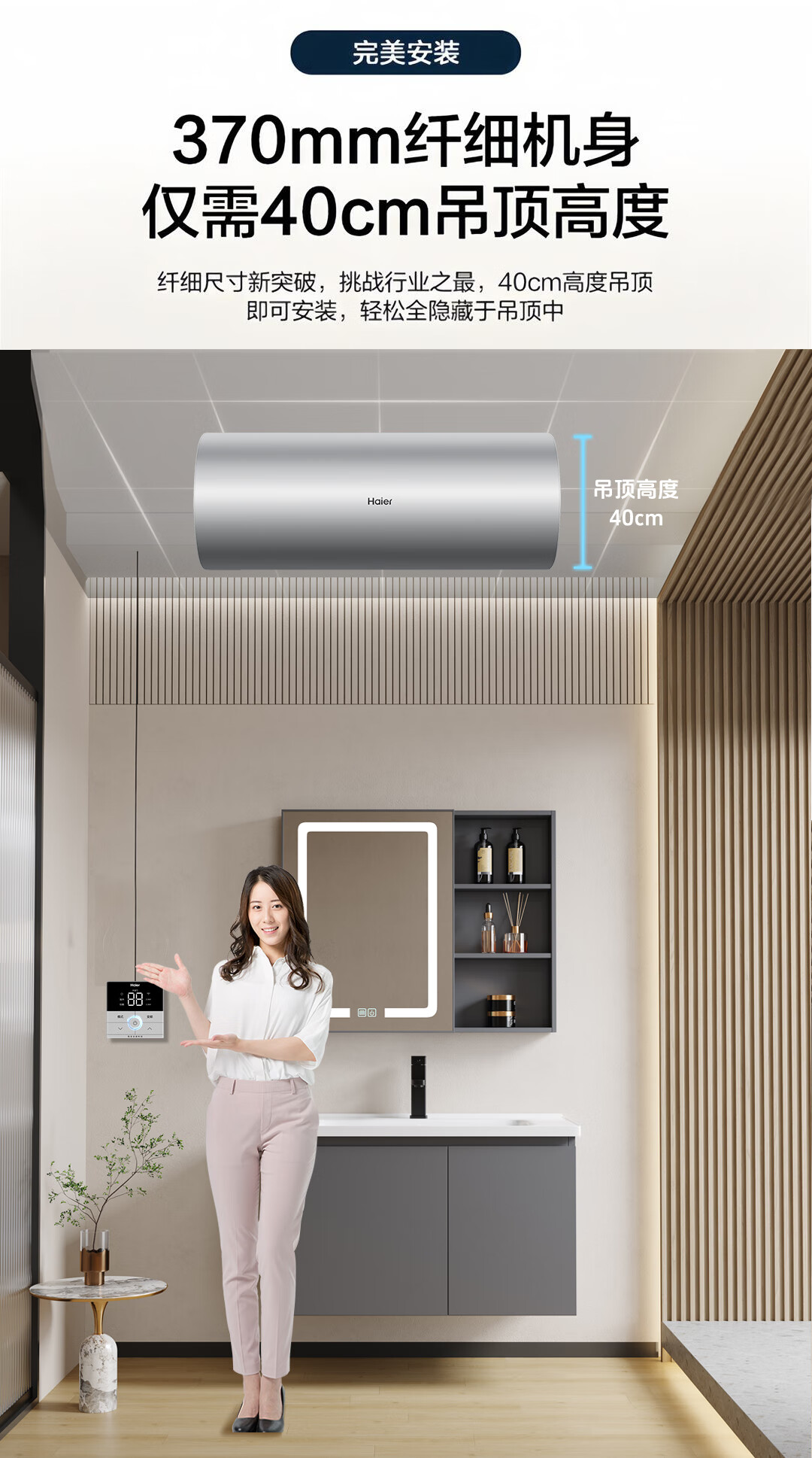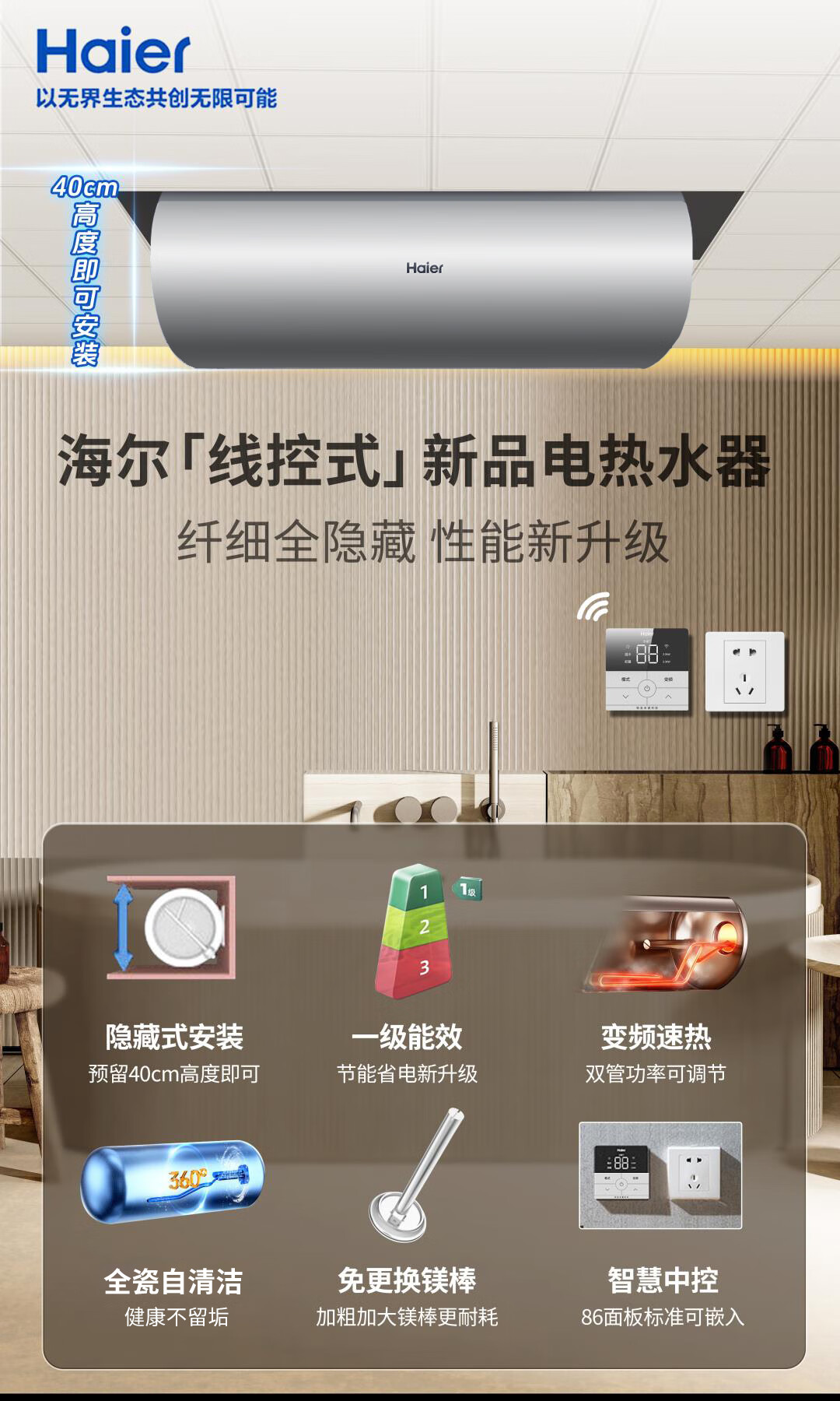 海尔(Haier)全隐藏式电热水器60升/50线控吊顶双管变频3300W速热免换镁棒一级能效免清洗内胆手机APP智控L7N 60L 3300W