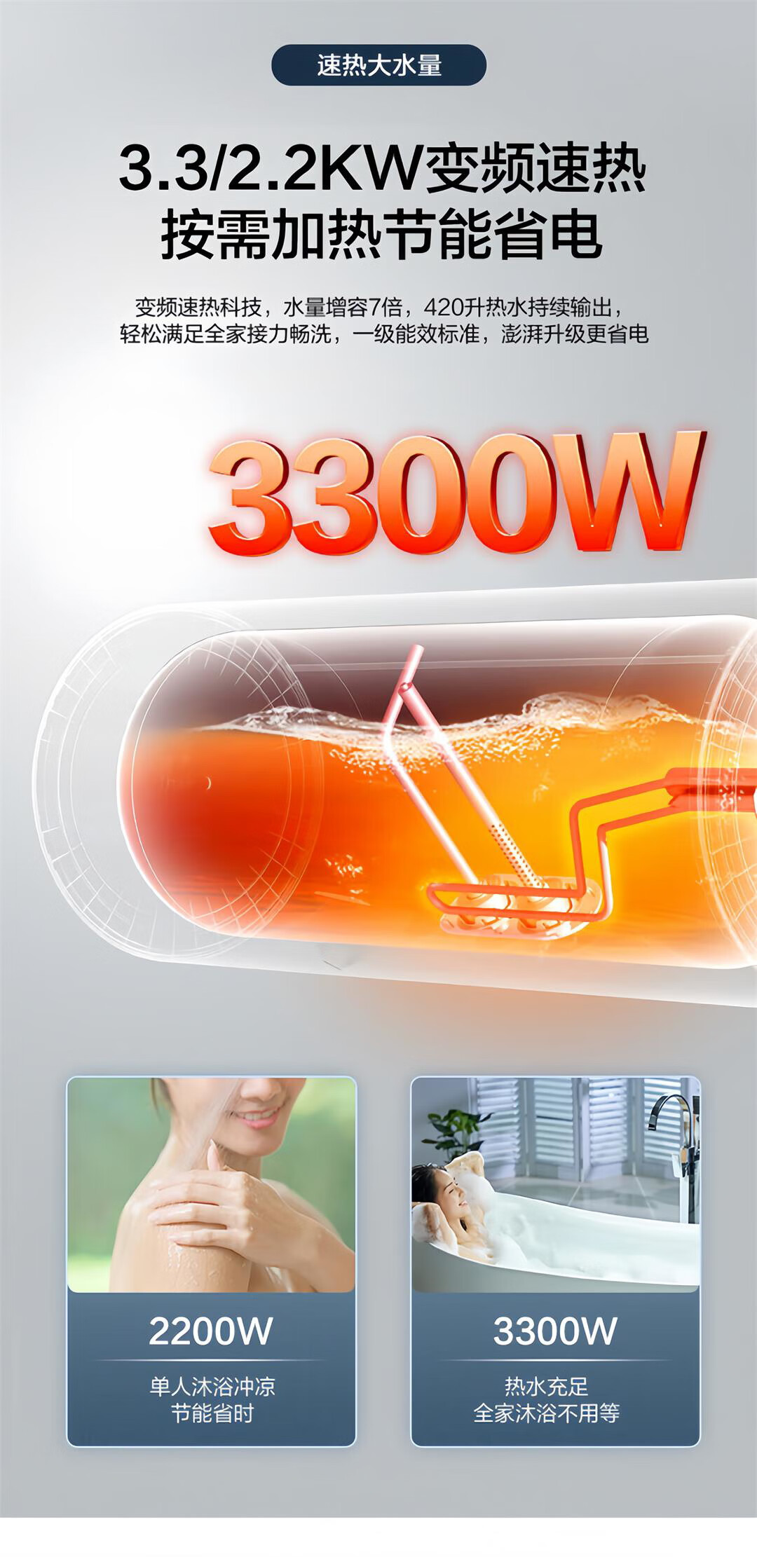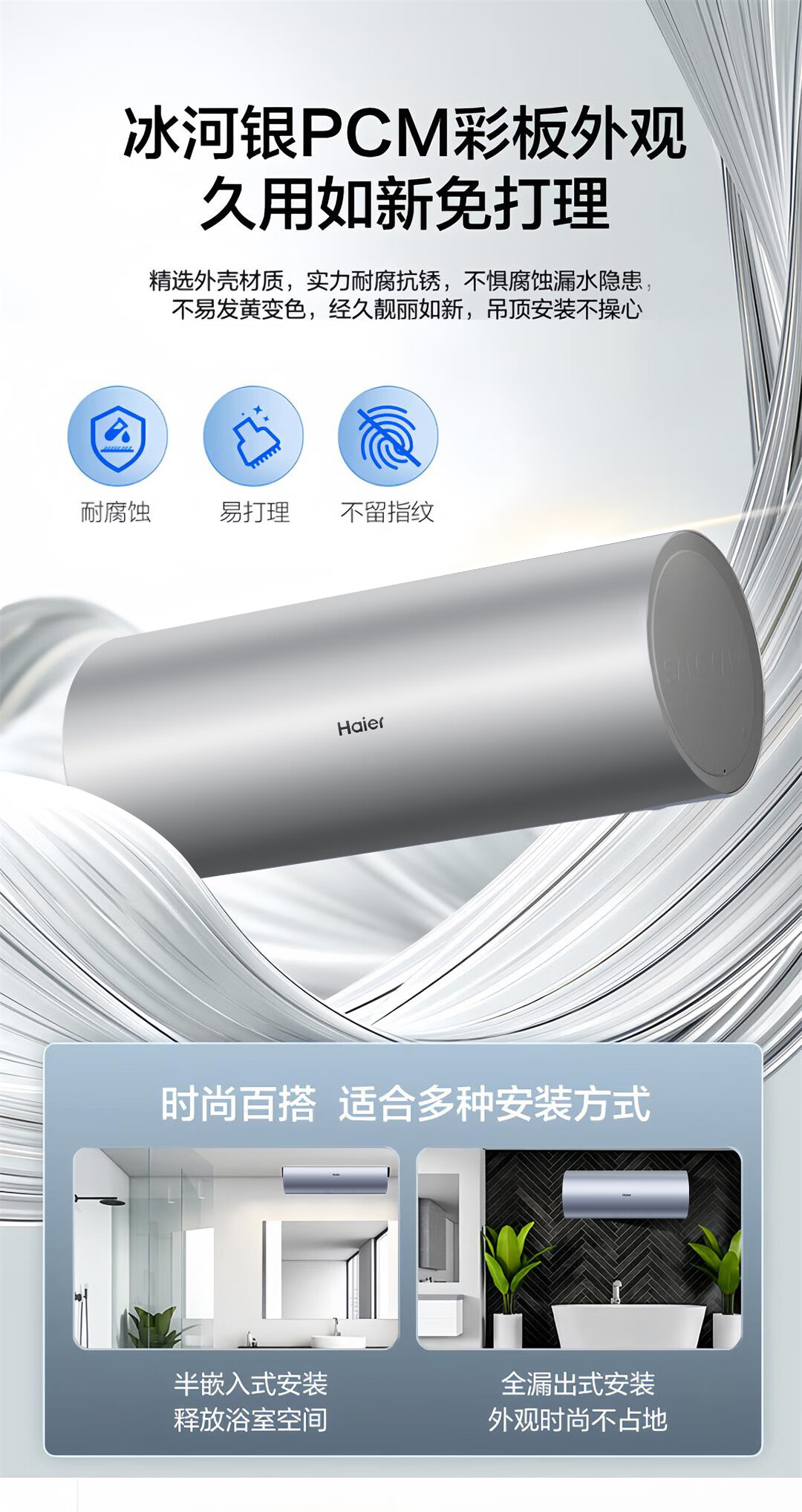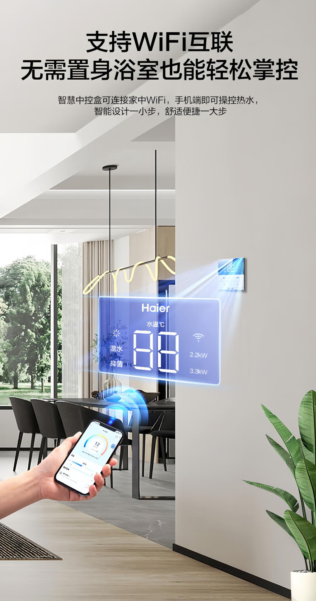 海尔(Haier)全隐藏式电热水器60升/50线控吊顶双管变频3300W速热免换镁棒一级能效免清洗内胆手机APP智控L7N 60L 3300W