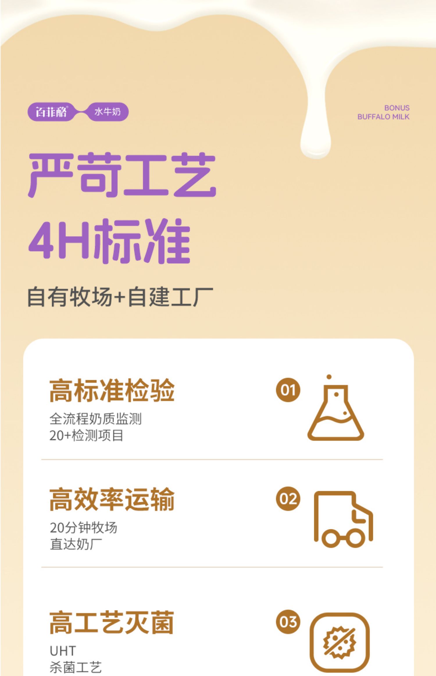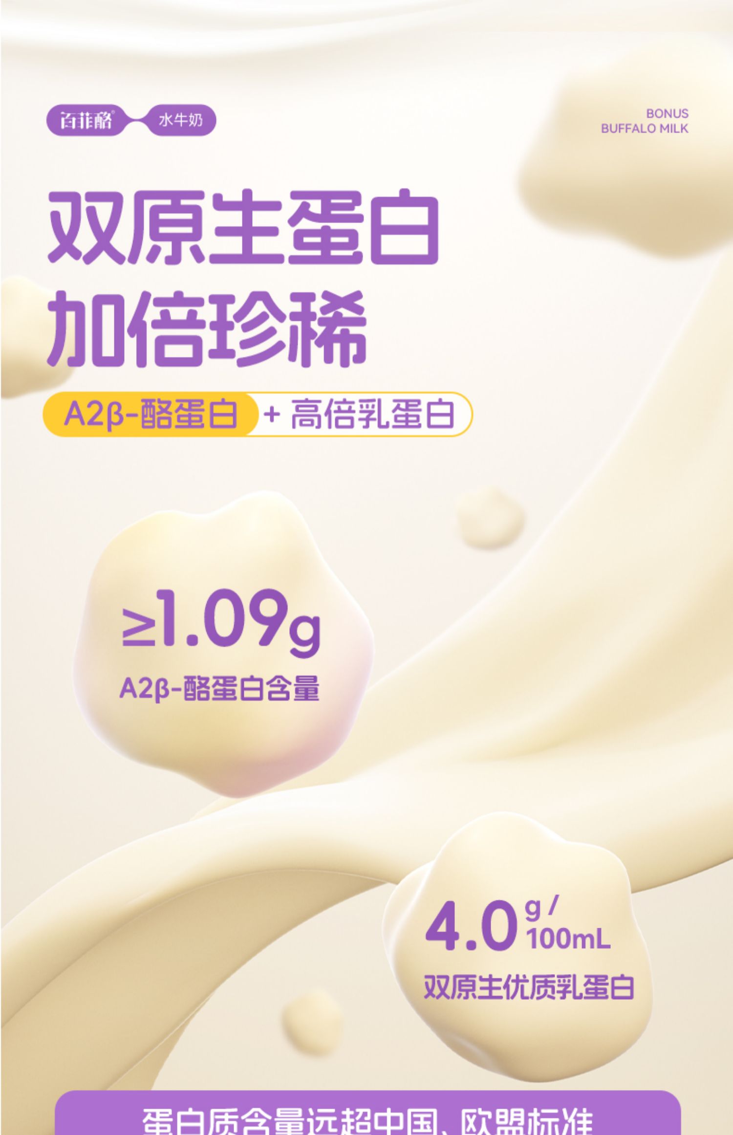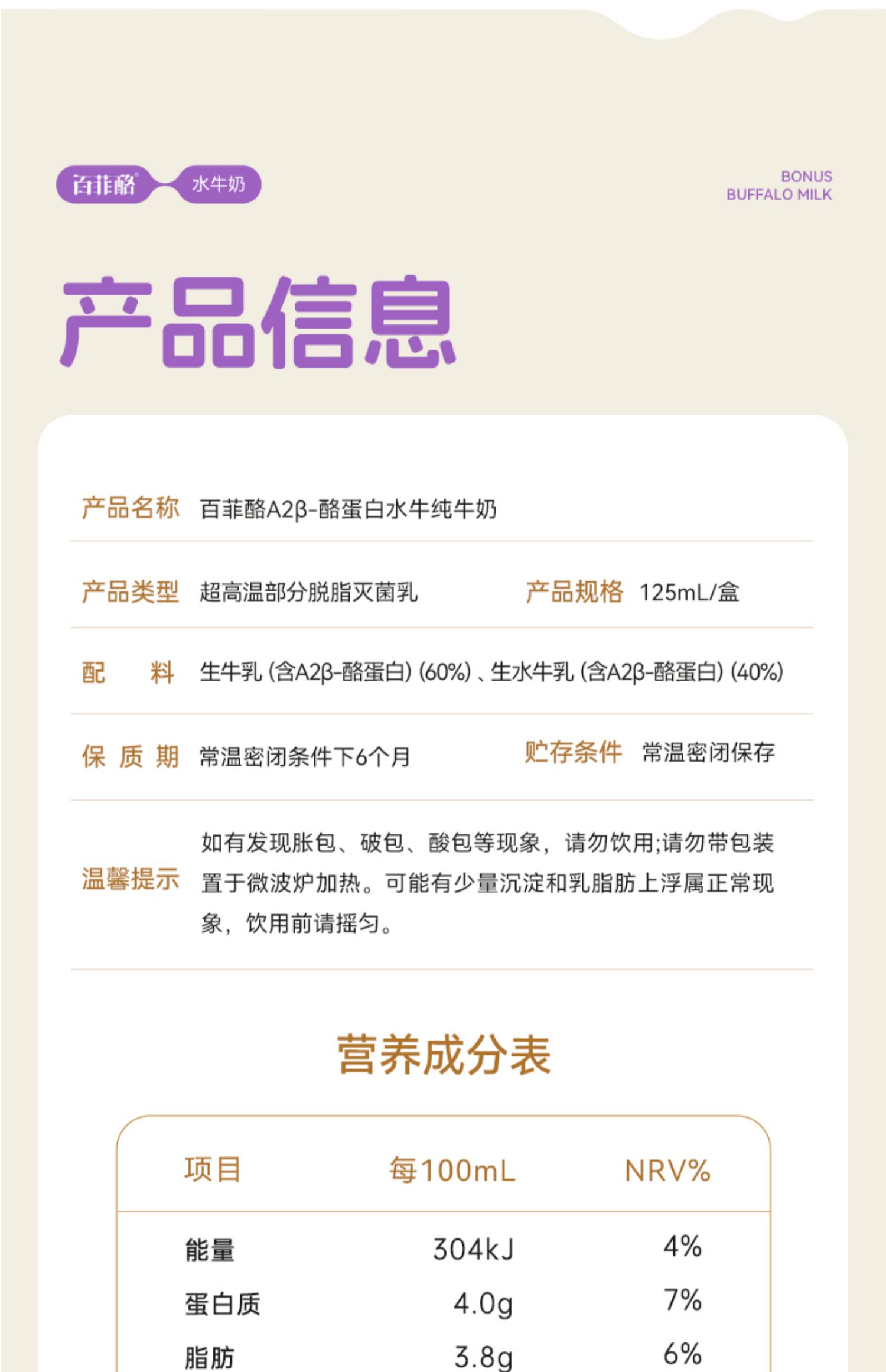 品名:百菲酪A2β-酪蛋白4.0g蛋白水牛纯牛奶 |