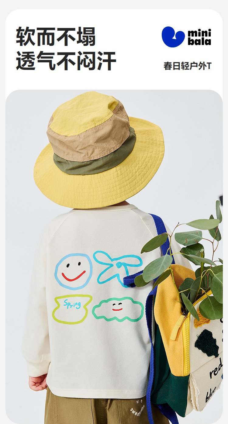 迷你巴拉男女童宝宝长袖T恤柔软舒适轻盈蓬松透气轻户外风2026春
