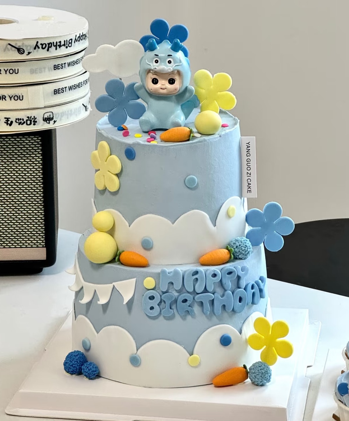 【臻品系列】--【蓝色可爱小龙】男孩满月、周岁生日蛋糕