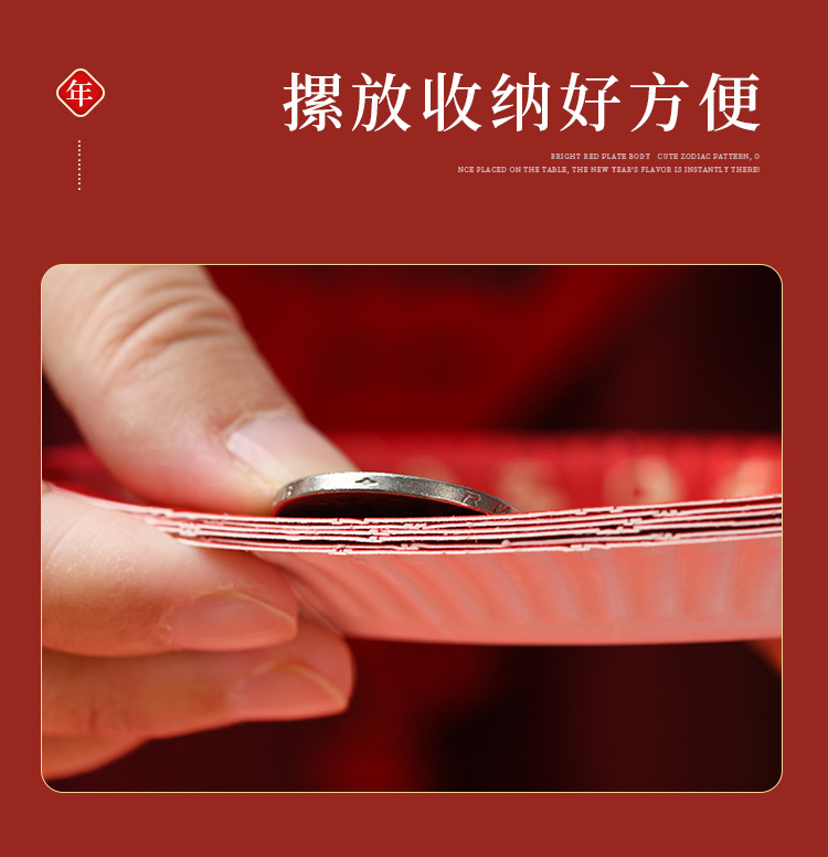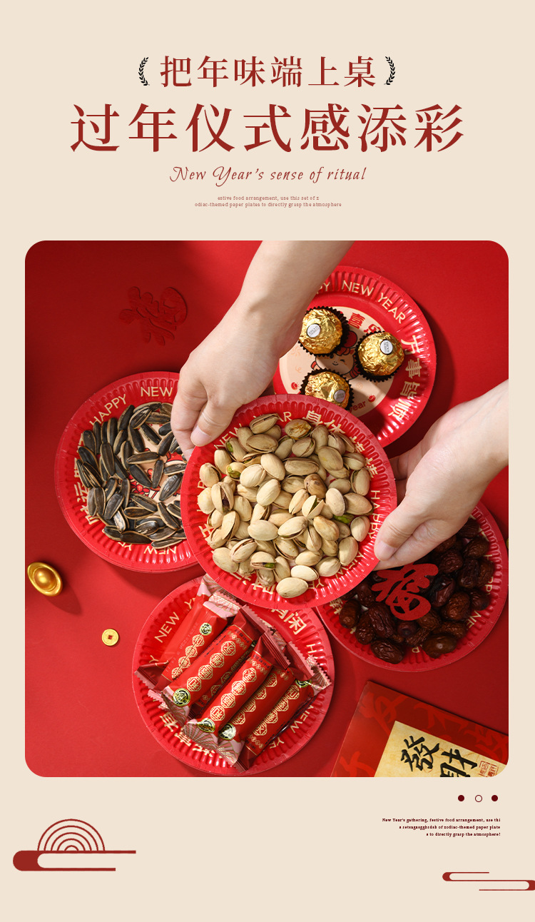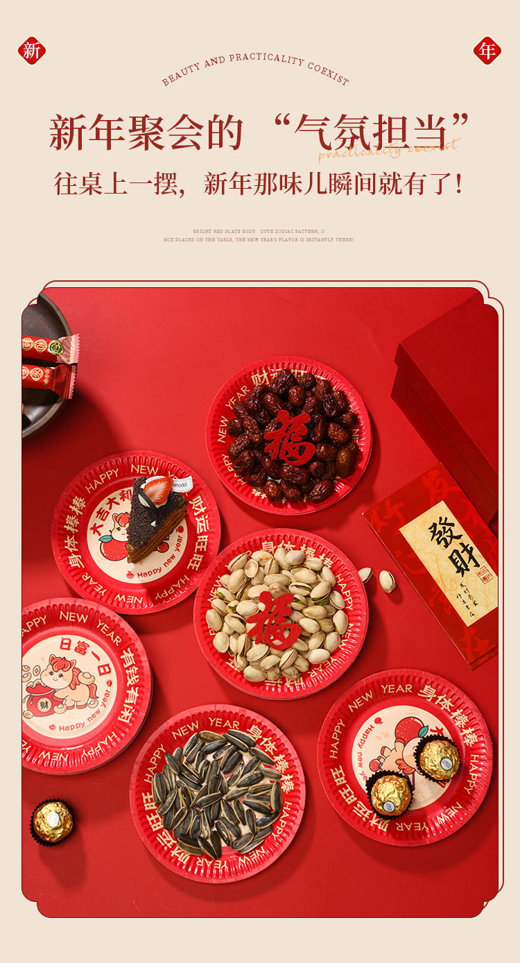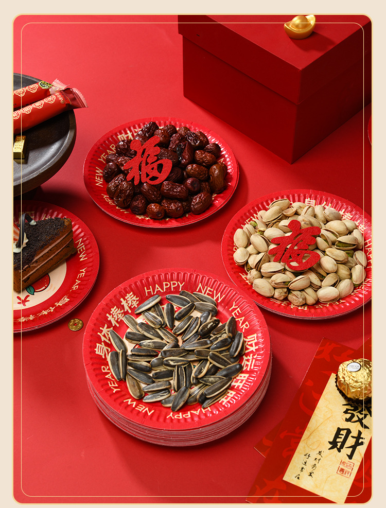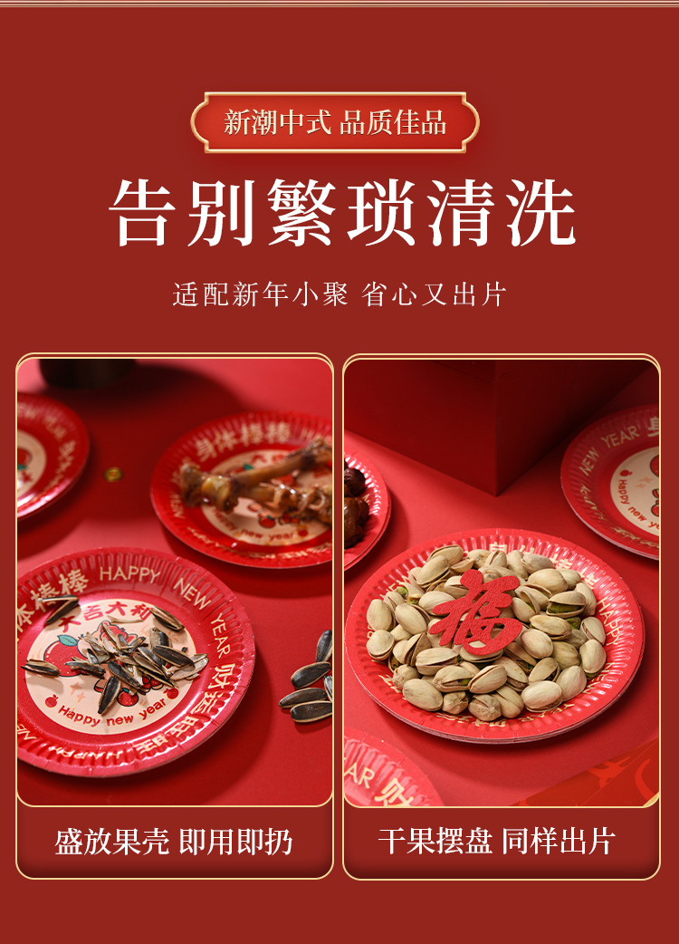 【喜庆新年款】2026马年新年春节吐骨碟客厅家用一次性加厚盘子喜庆纸盘野餐零食干果盘.jc