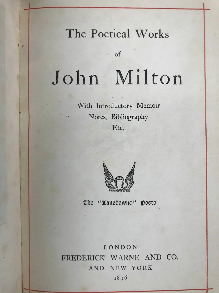 1896年 弥尔顿诗集 约8幅插图 漆布精装32开