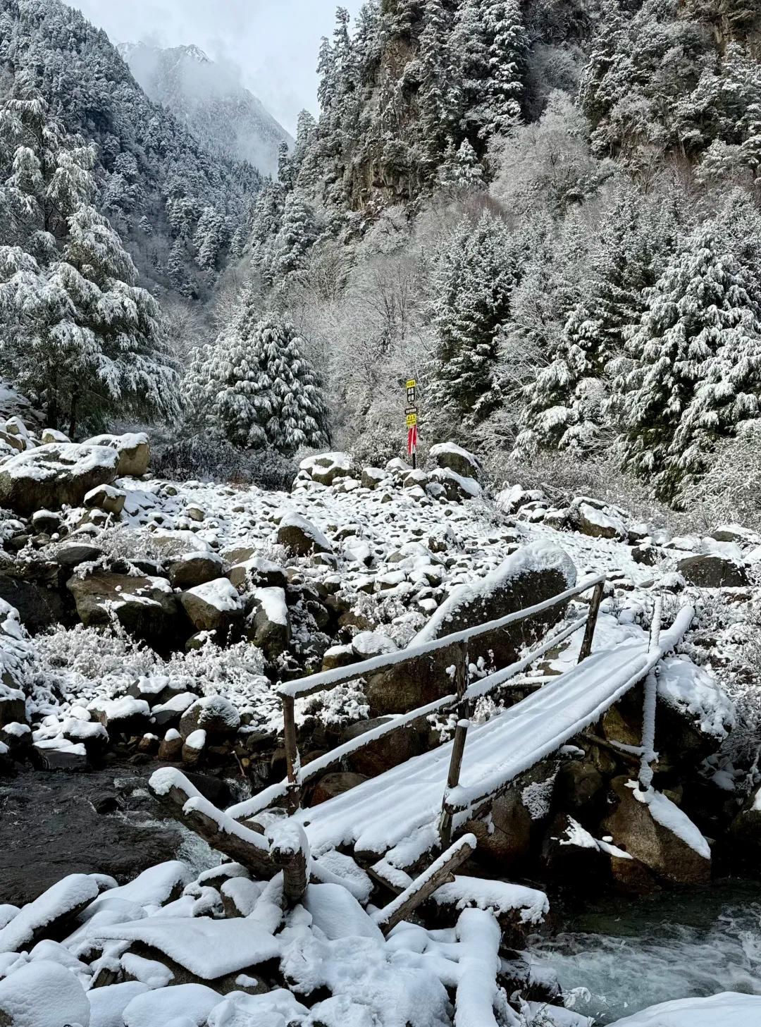 从登山口启程,天气好时,可以隐隐约约看见覆满藻类的赭红色巨石,如同大地燃烧的火焰,构成通往秘境的第一道震撼景象,幸运的话,会与成群的牦牛在此不期而遇,它们如同这片领地的守护者,在绚烂的画卷中平添一份野性的生命力