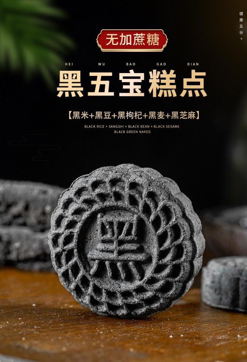 【以黑养黑!控糖不控营养】不单独添加蔗糖 黑芝麻黑五宝糕点 40g/袋中老年代餐用零食 5种黑色健康食品好吃
