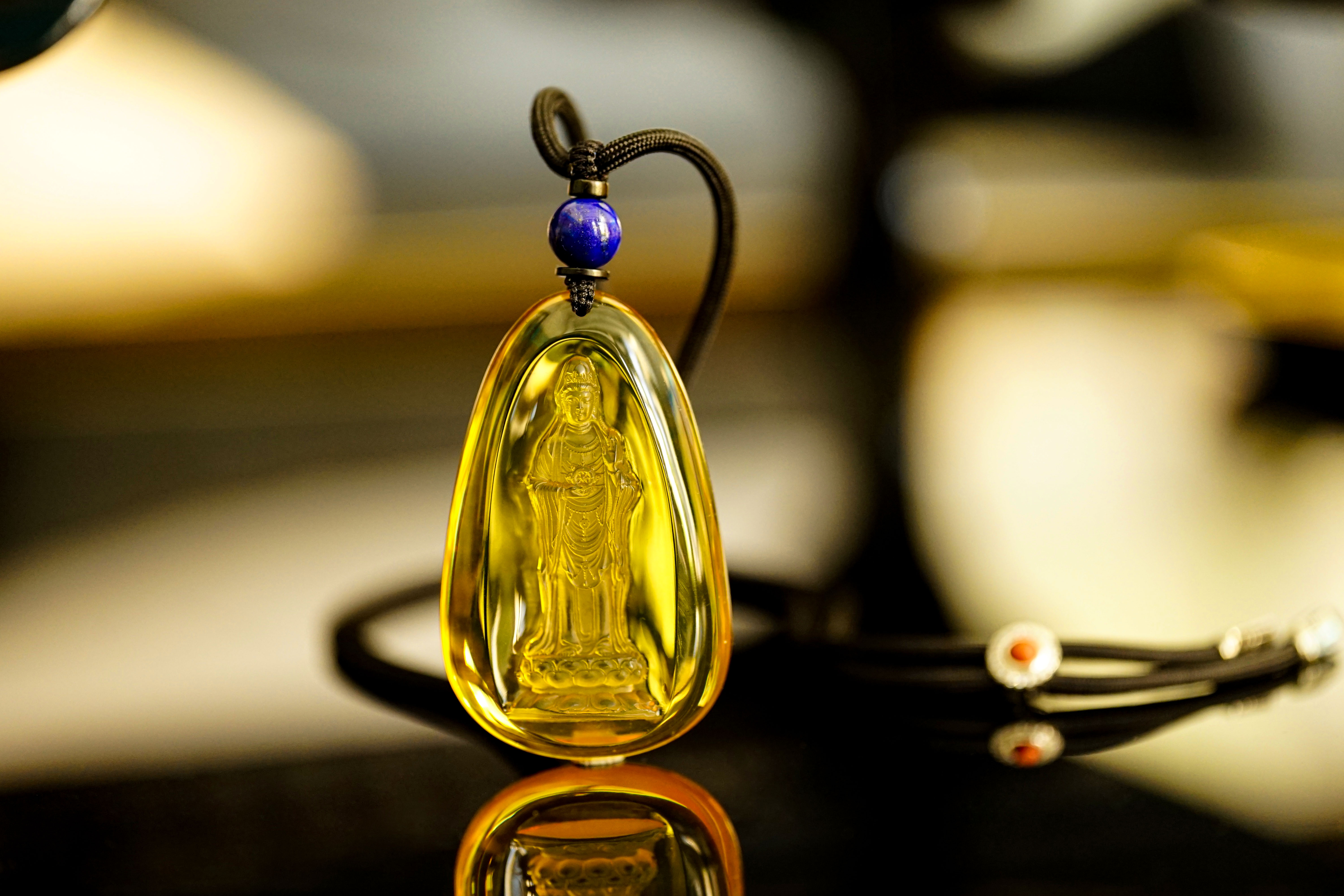 南海观音·墨西哥蓝珀水滴形雕件吊坠