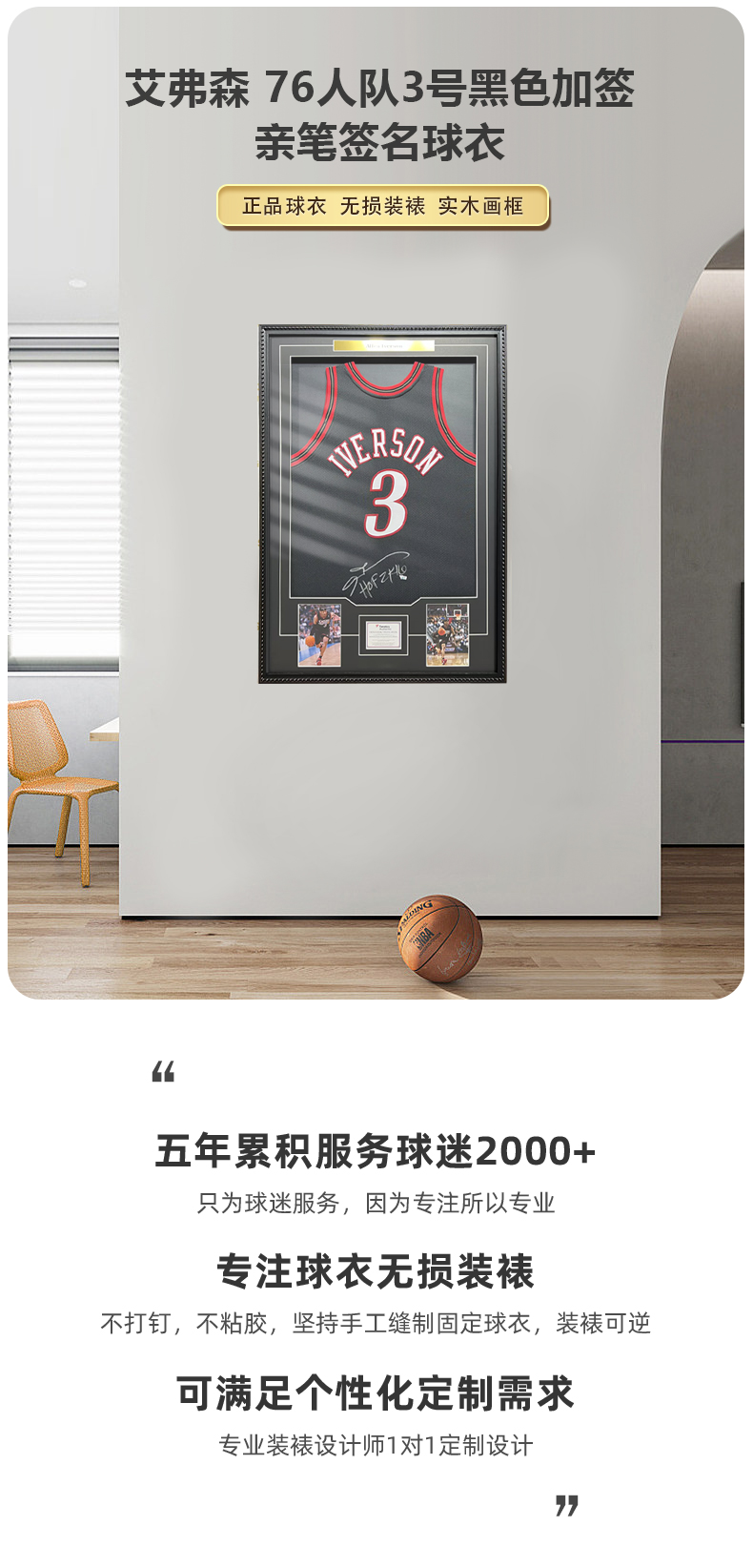 收藏系列 艾弗森 76人队3号黑色加签 亲笔签名球衣
