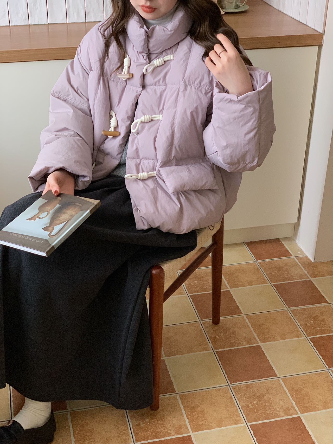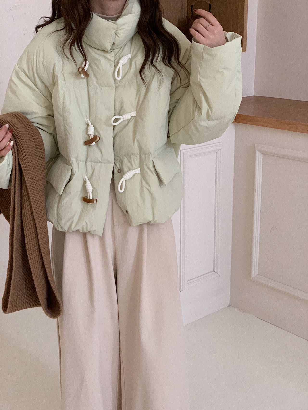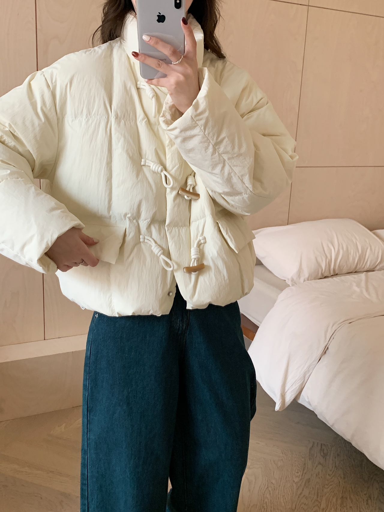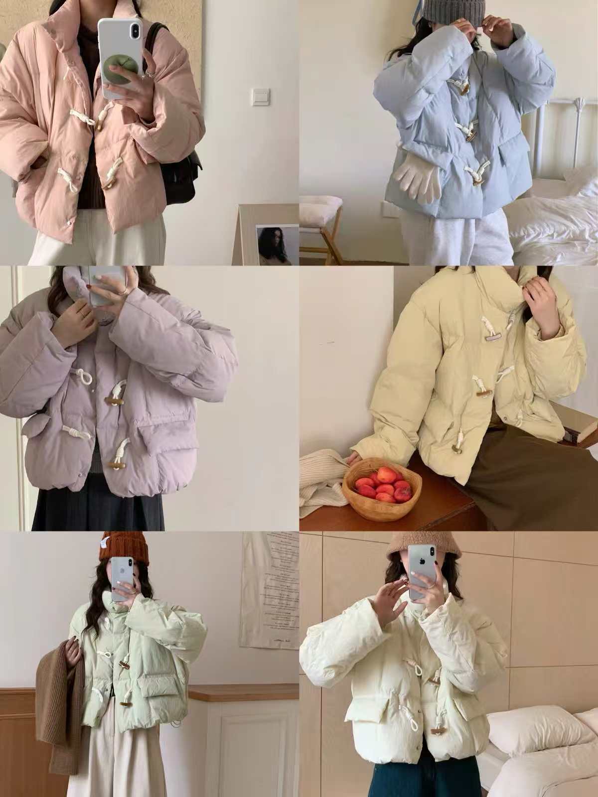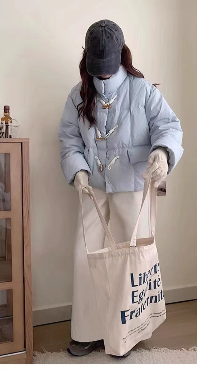 【YW】无忧购短款牛角扣羽绒服女新款韩版白鸭绒立领宽松冬季外套(截单后7天发货)
