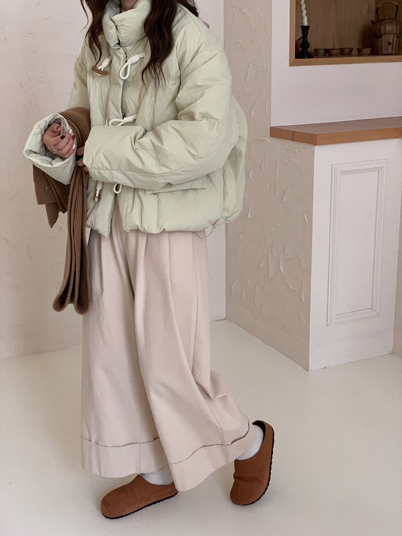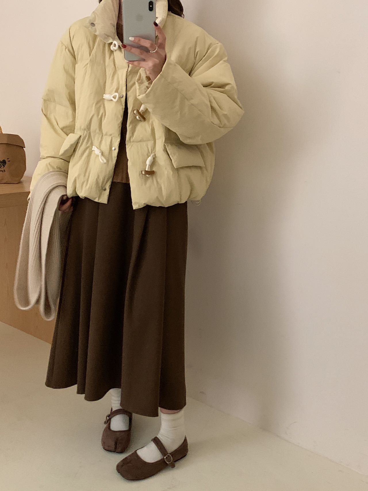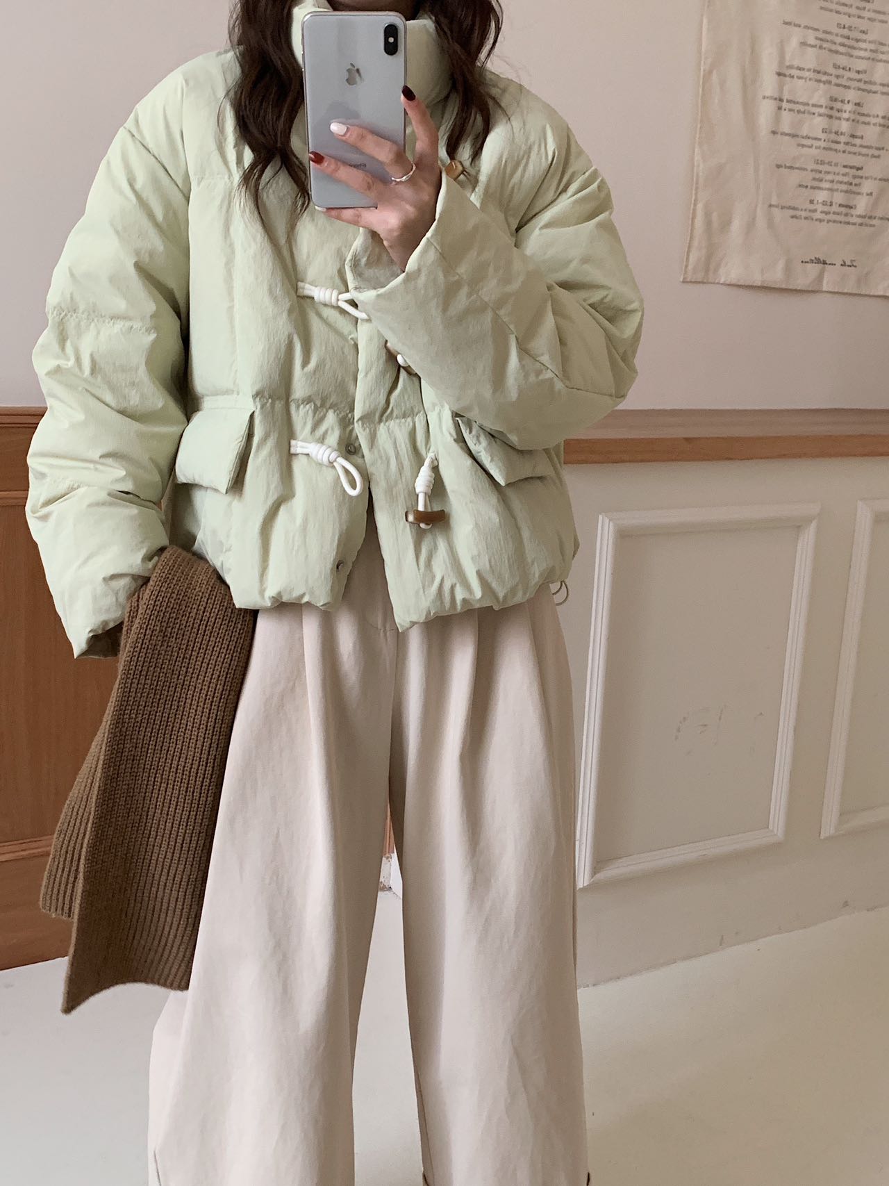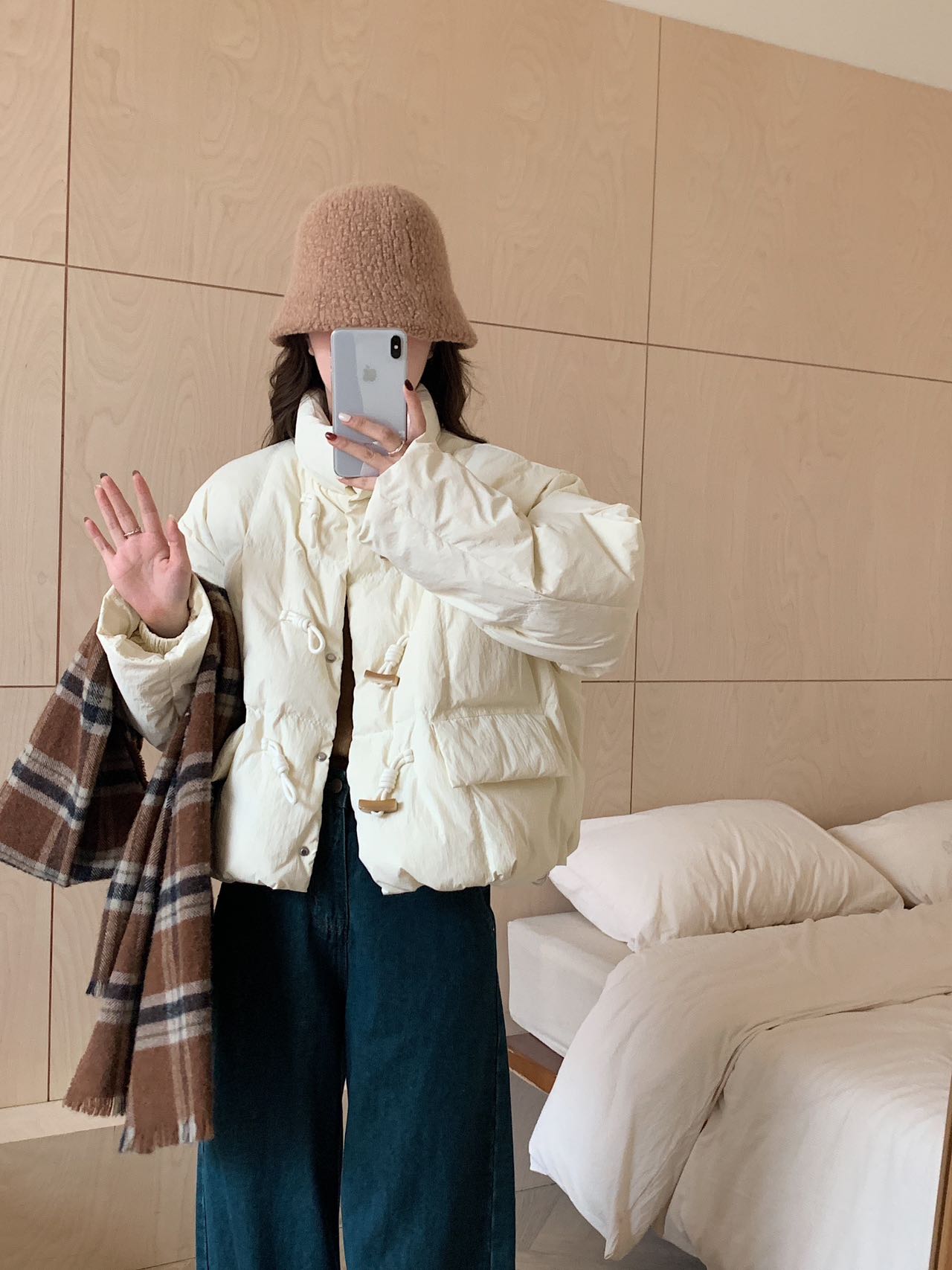 【YW】无忧购短款牛角扣羽绒服女新款韩版白鸭绒立领宽松冬季外套(截单后7天发货)