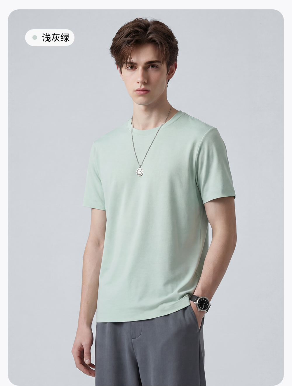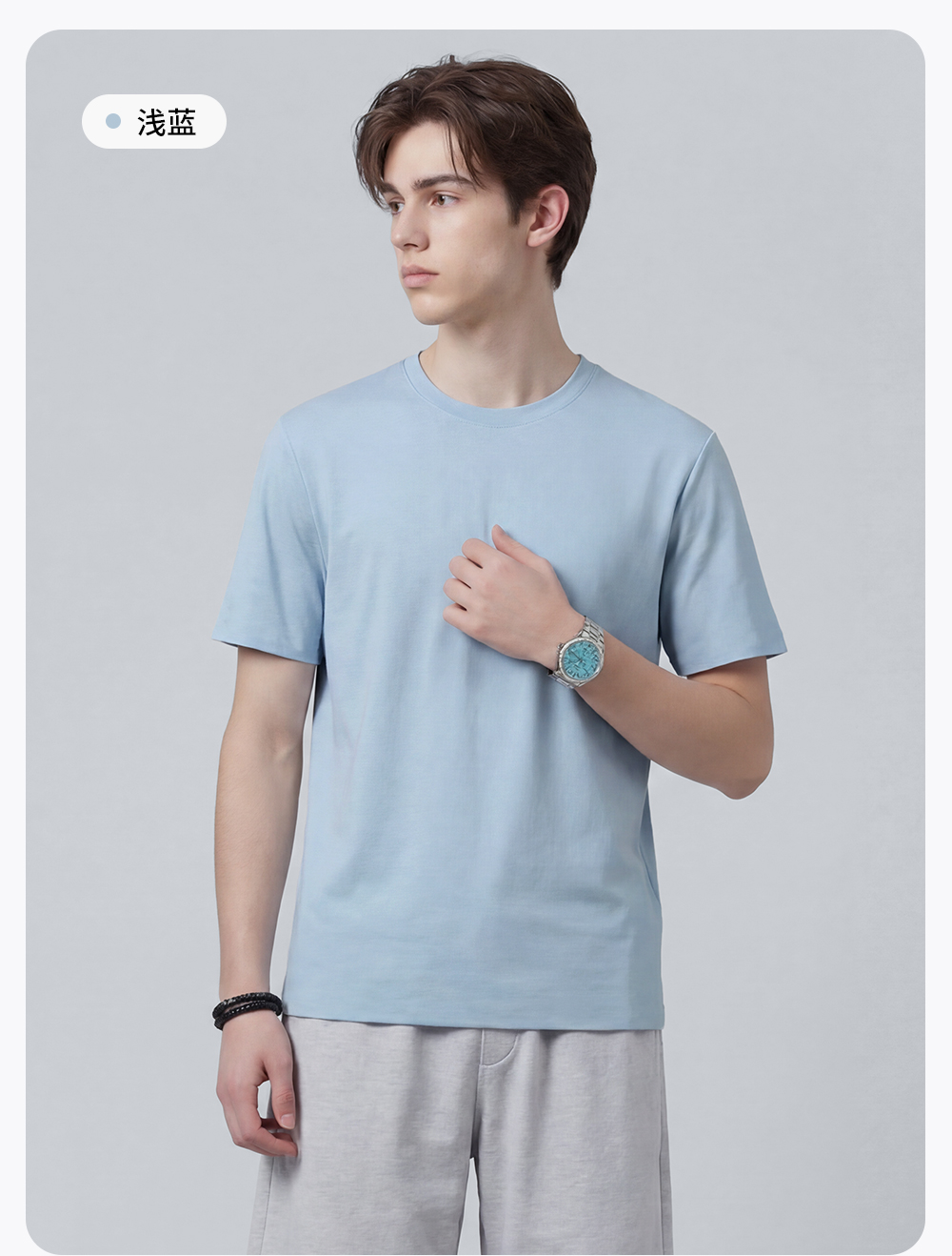 【7A抗菌&凉感】圣得西短袖男款2026新款春季棉感舒适休闲圆领T恤