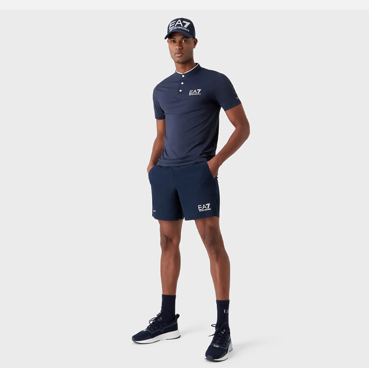 EMPORIO ARMANI EA7 阿玛尼 男士字母徽标印花短袖polo衫 蓝色 8NPT21 PJEMZ 1554