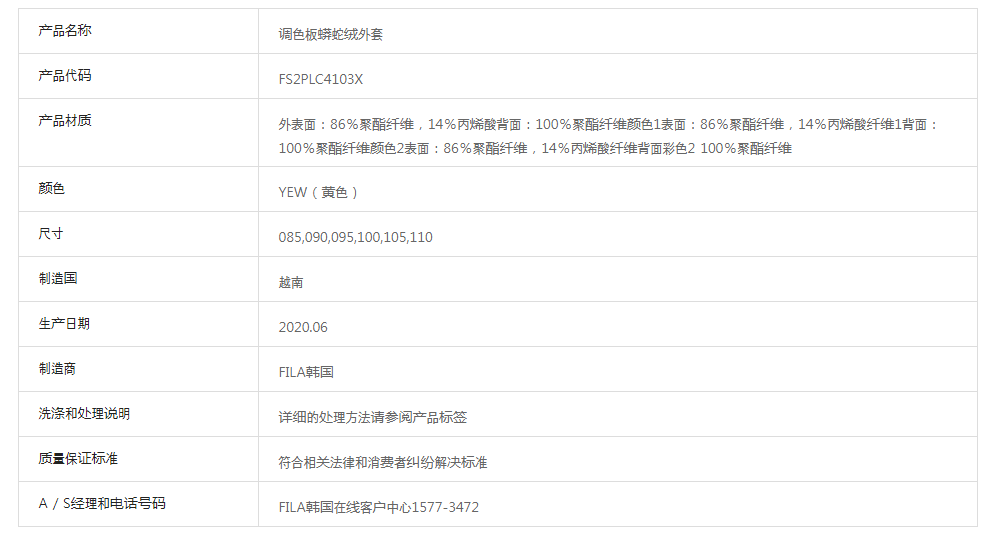 FILA斐乐韩国羊羔套头冬天外套FS2PLC4103X_YEWJPY带授权招加盟代理