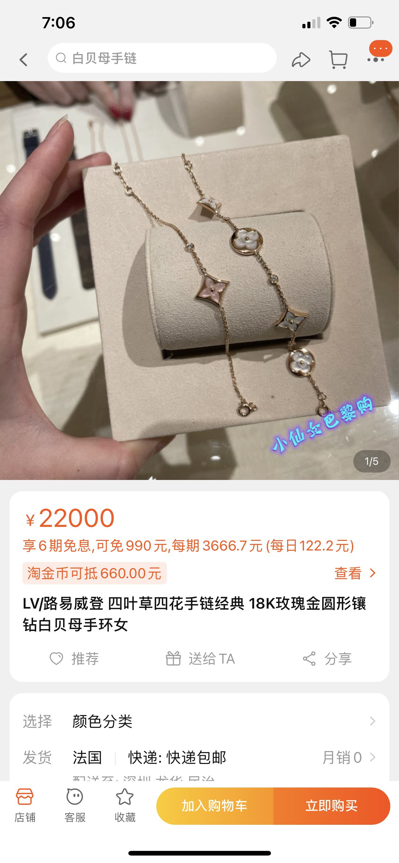 价值20000+ 神仙颜值 海外渠道!LV新款B BLOSSOM系列四花贝母手链 S925银厚镀18K真金玫瑰金 高级感爆棚 晶莹剔透 美轮美奂 上手大气高贵 配送全套包装 预售