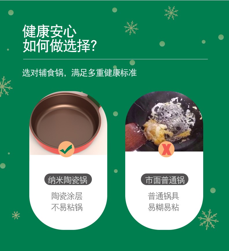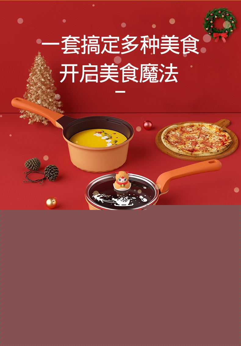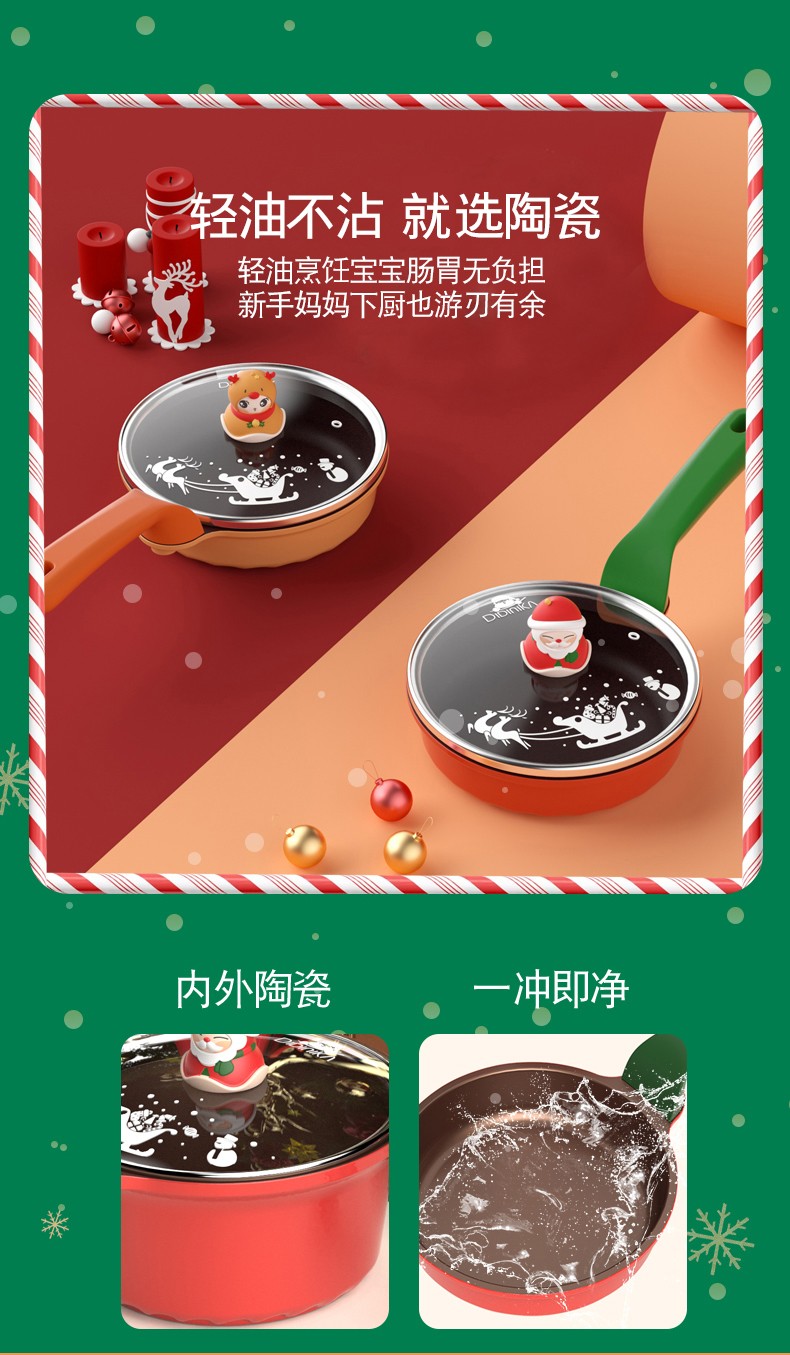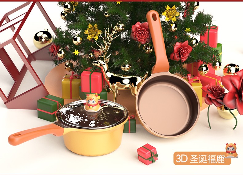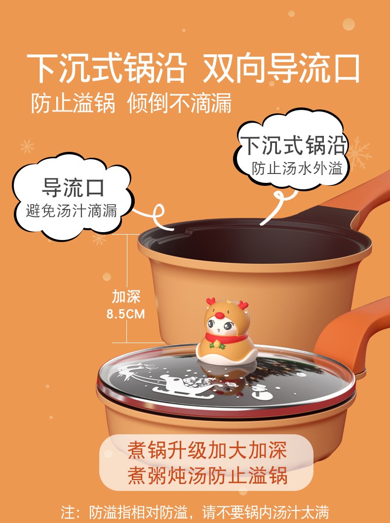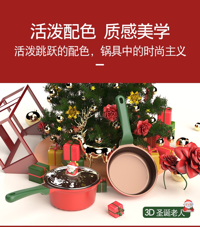 Didinika 2020圣诞限量款宝宝辅食锅婴儿奶锅17cm小锅平底汤锅麦饭石不粘锅煮泡面热牛奶锅 3D圣诞老人款(奶锅+煎锅+硅胶勺)