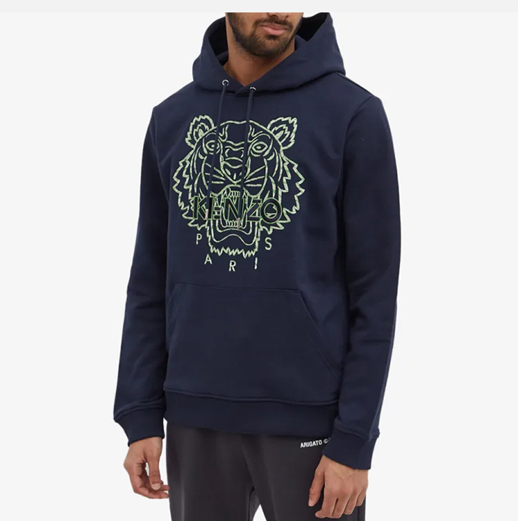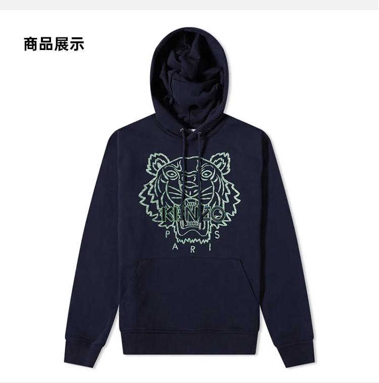KENZO 高田贤三 男士大虎头徽标刺绣棉质连帽长袖卫衣 深蓝色 FC55 SW338 4XF 77