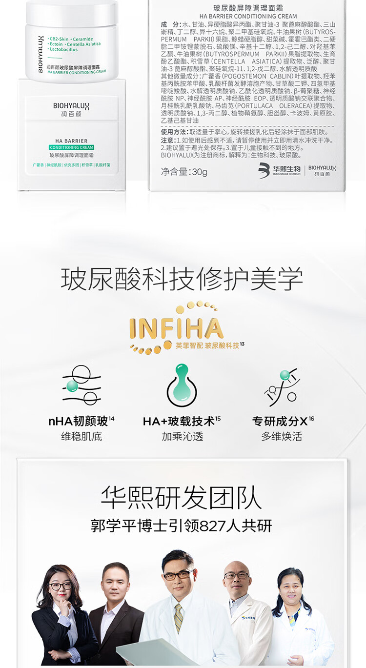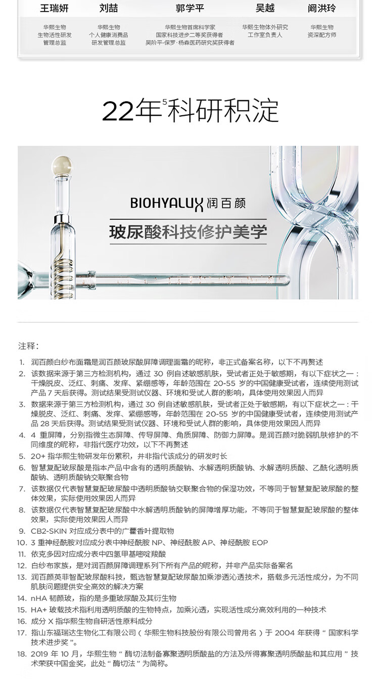 润百颜 玻尿酸屏障调理白纱布面霜30g/60g 敏肌修护面霜
