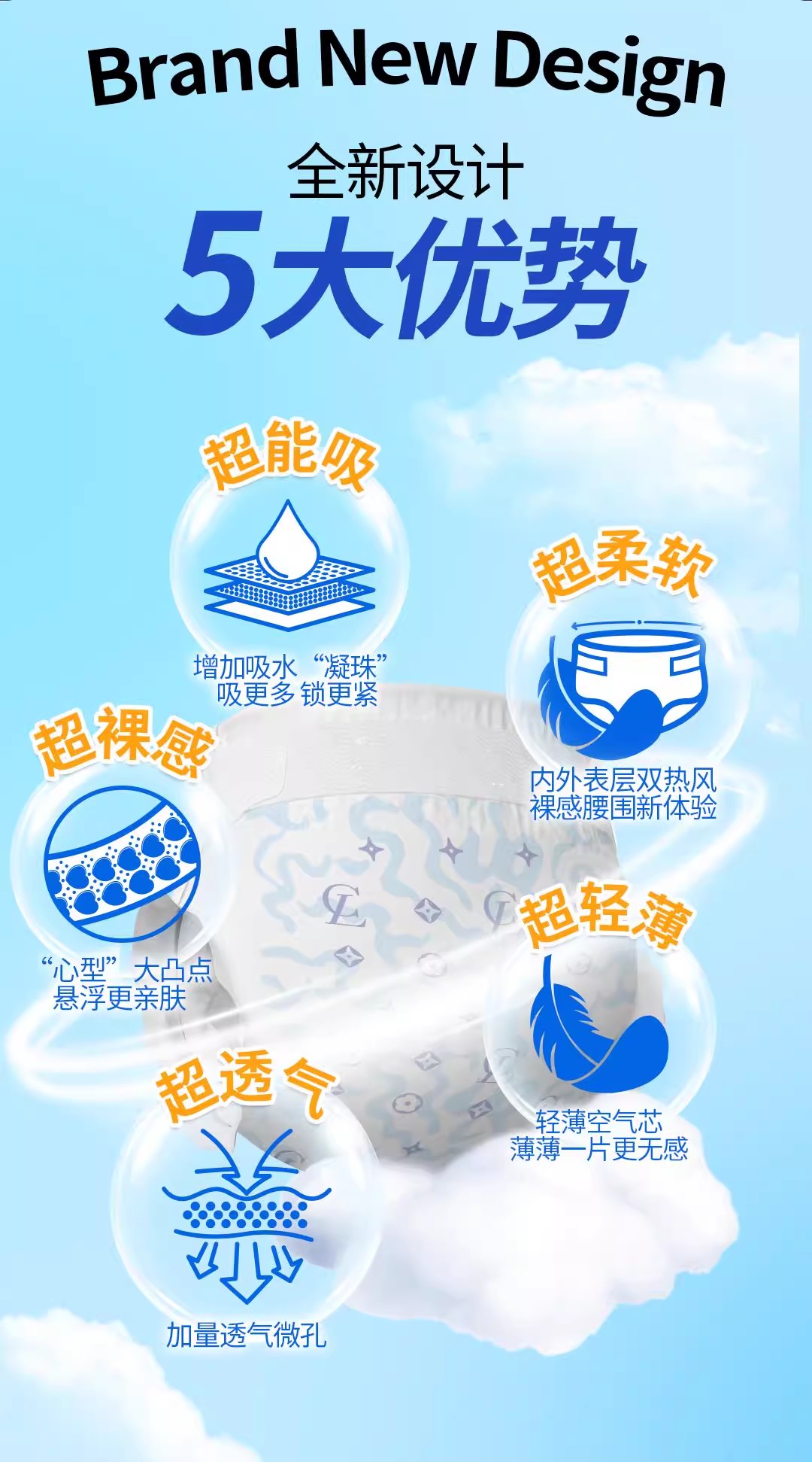 好奇奢透呼吸纸尿裤拉拉裤超薄透气干爽尿不湿