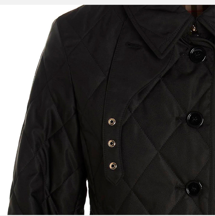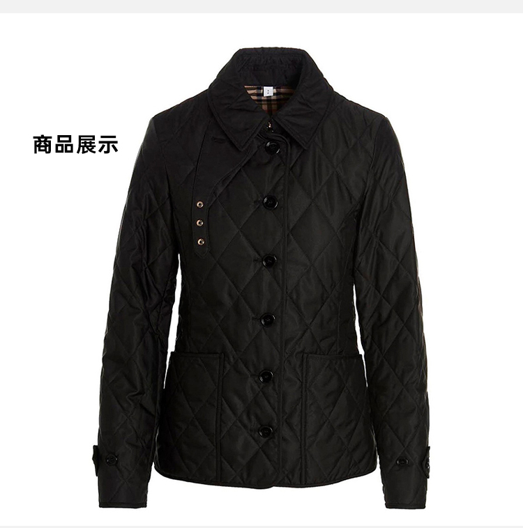 BURBERRY 巴宝莉 女士灯芯绒衣领菱形绗缝短款谷仓夹克棉服 黑色 8049869 B1035