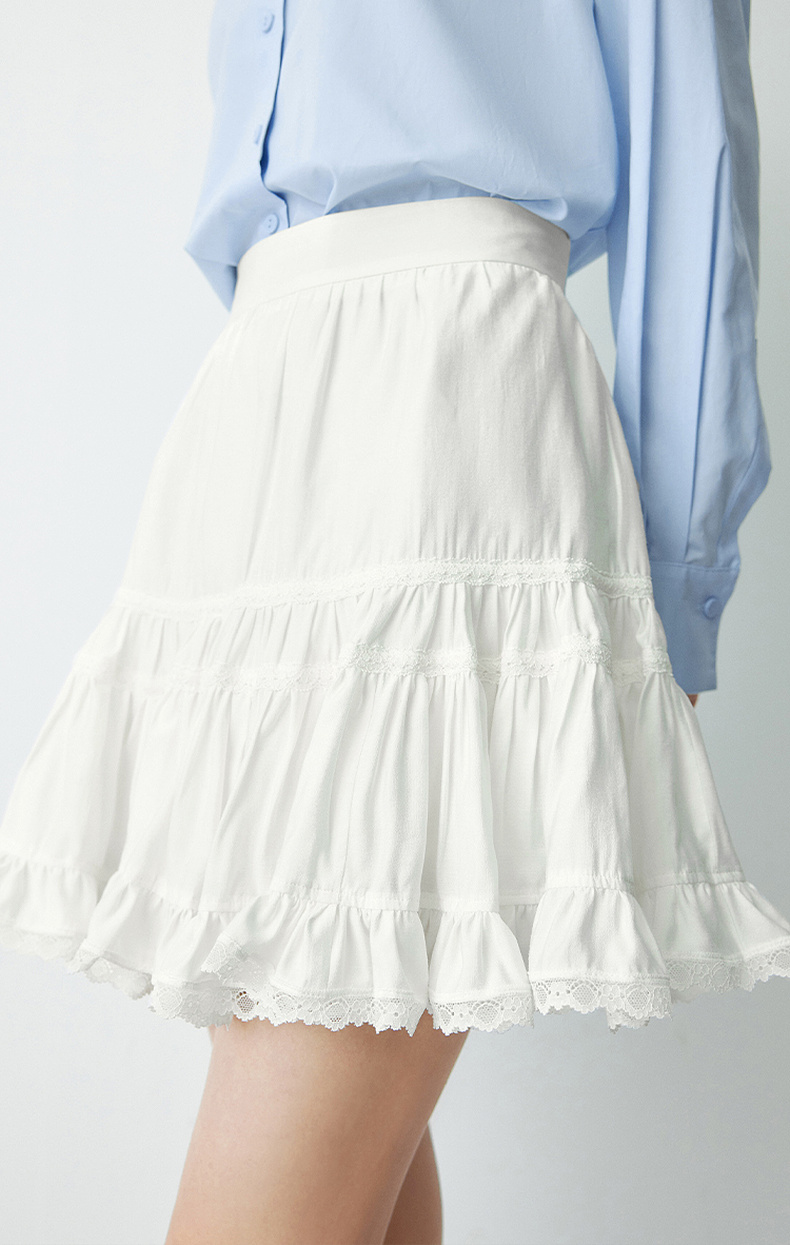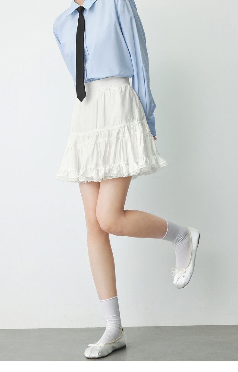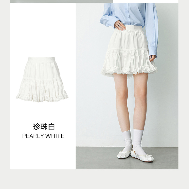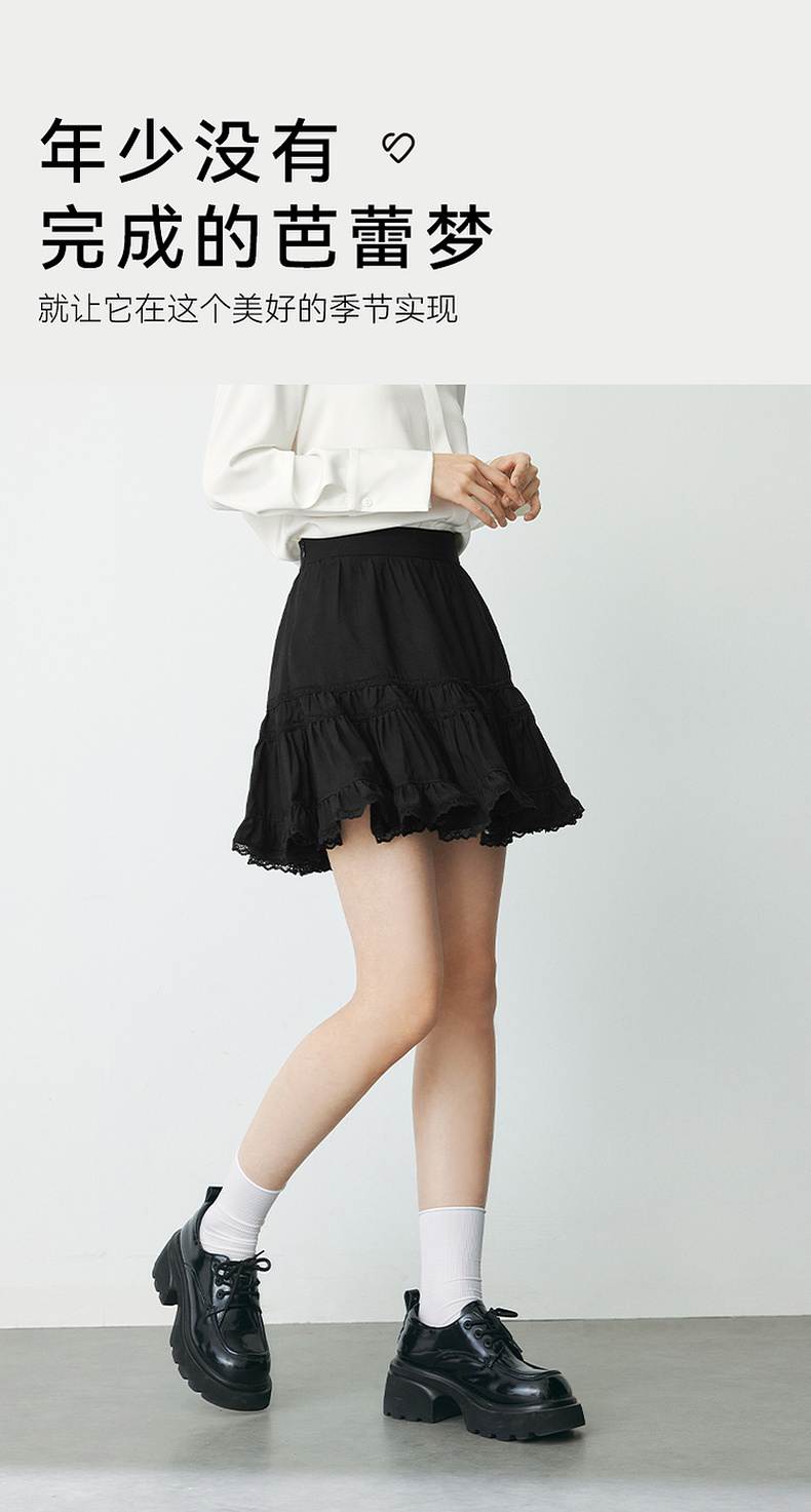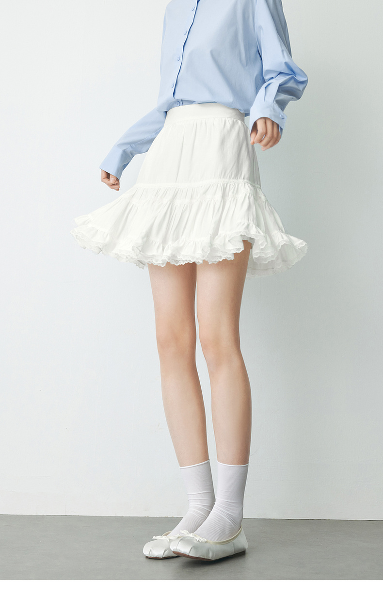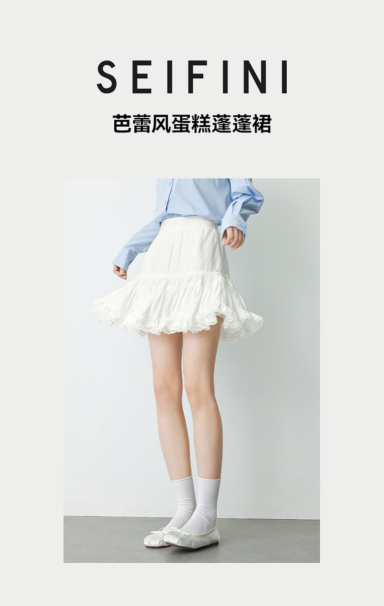 【严选】诗凡黎春短款蛋糕木耳边装饰半身裙SF2340501