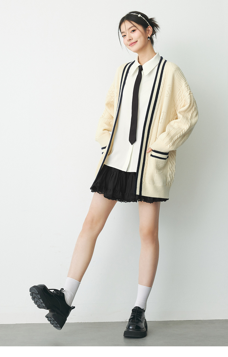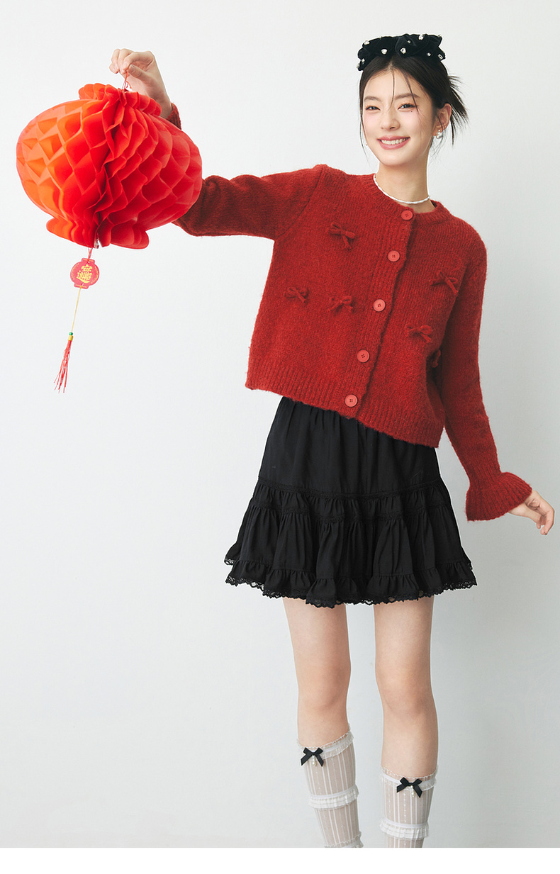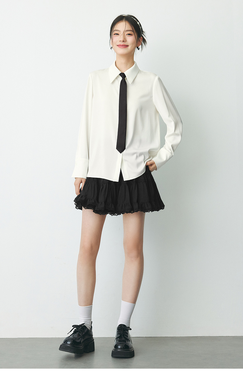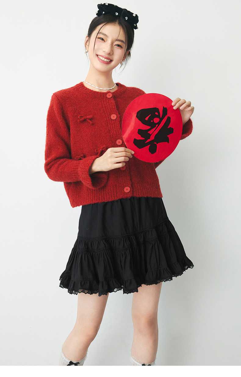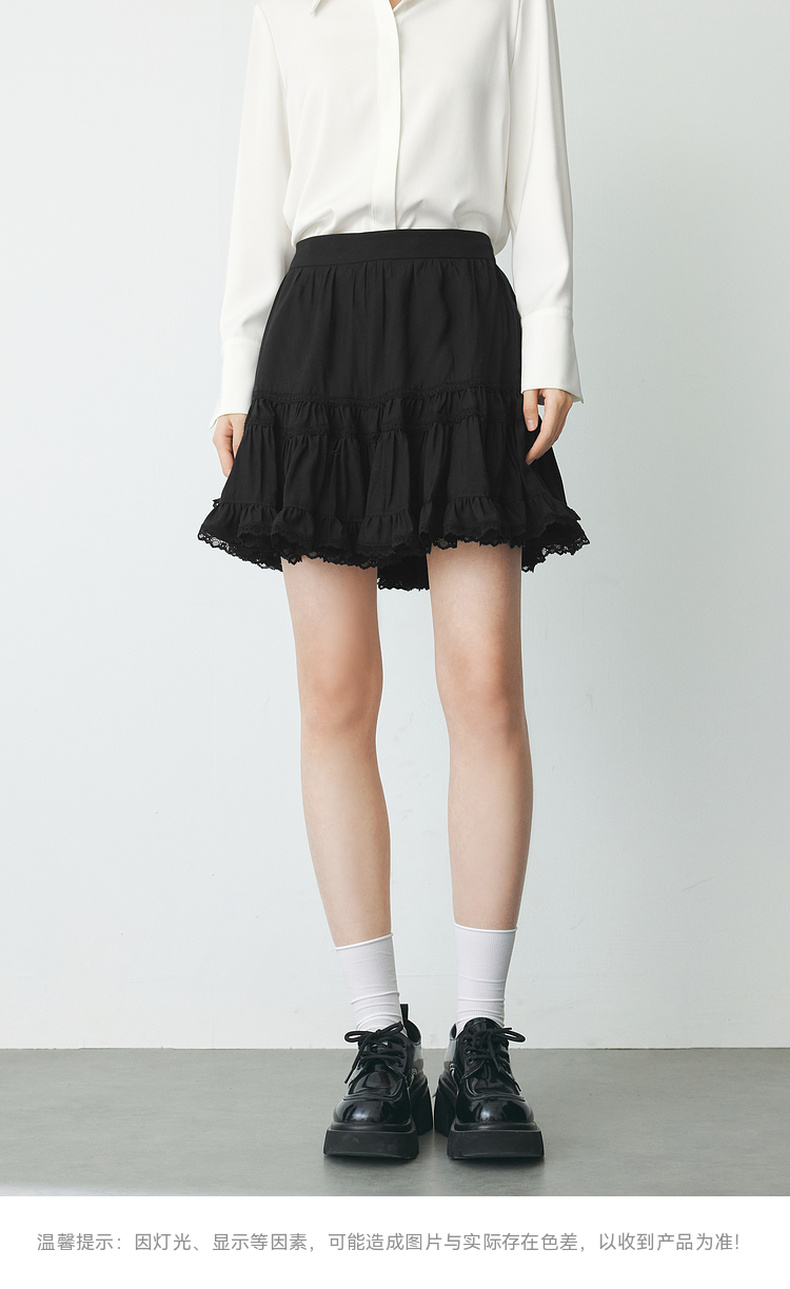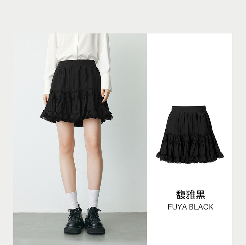 【严选】诗凡黎春短款蛋糕木耳边装饰半身裙SF2340501