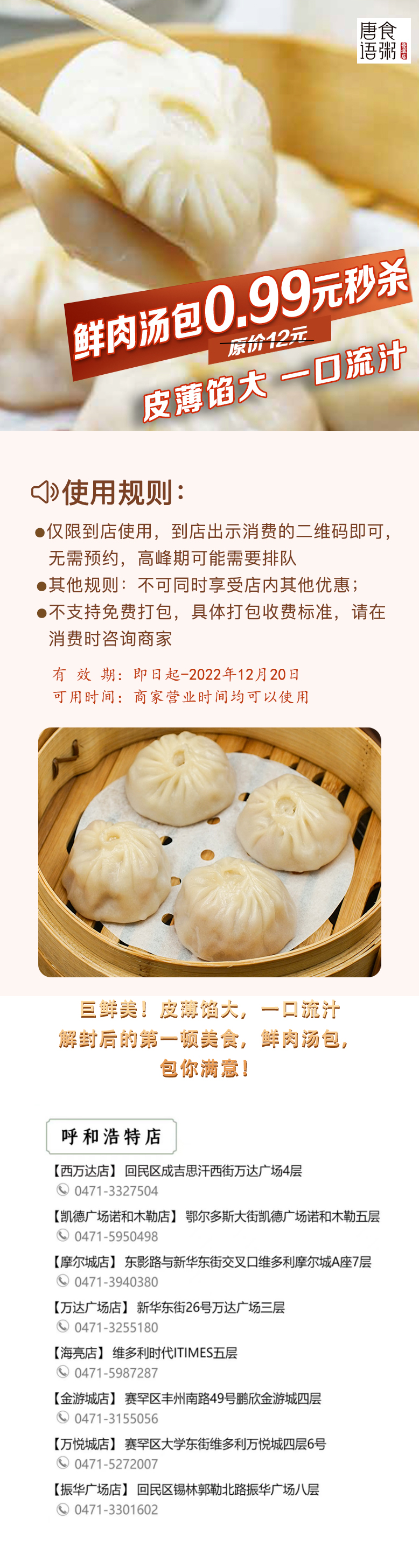 唐食语粥鲜肉汤包(到店使用限用一张)