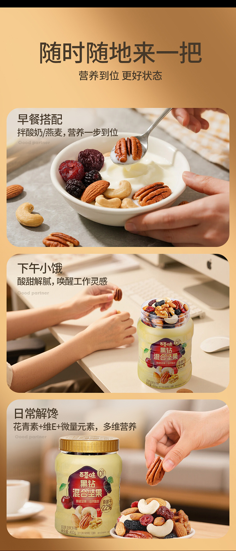 【百草味】每日坚果 黑钻混合坚果 400g(4+3/圆罐装)