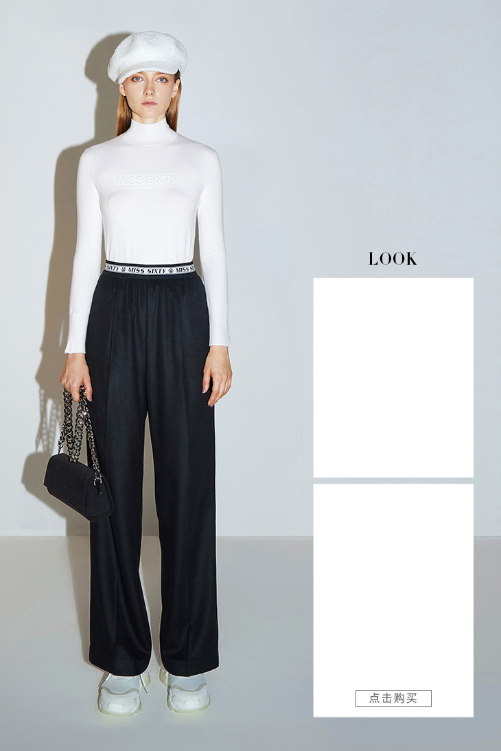 Miss Sixty2020冬季新款羊毛混纺高腰宽松阔腿裤女604PJ3100000