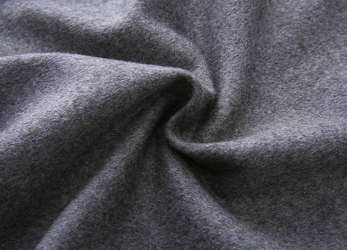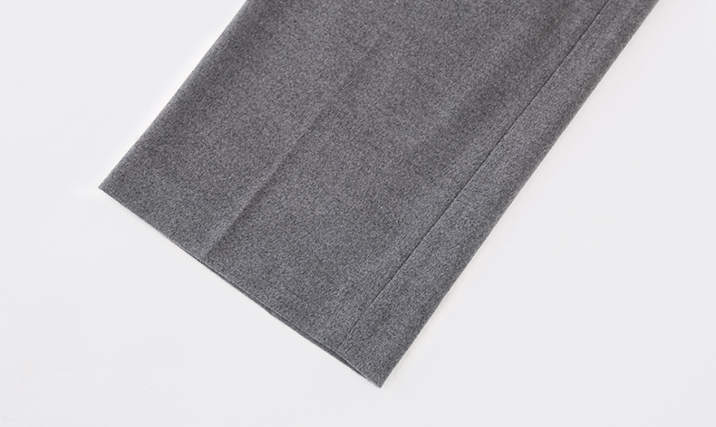 选用高支羊毛精纺纱织就,经后整理工艺使布面轻起毛,毛顺且细腻,加入真丝成分,令手感柔软滑爽,带有弹性,成衣有型富有质感。