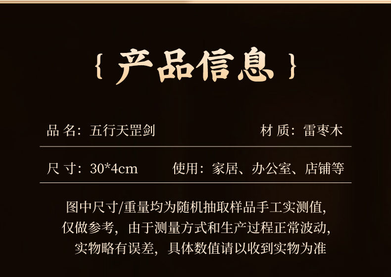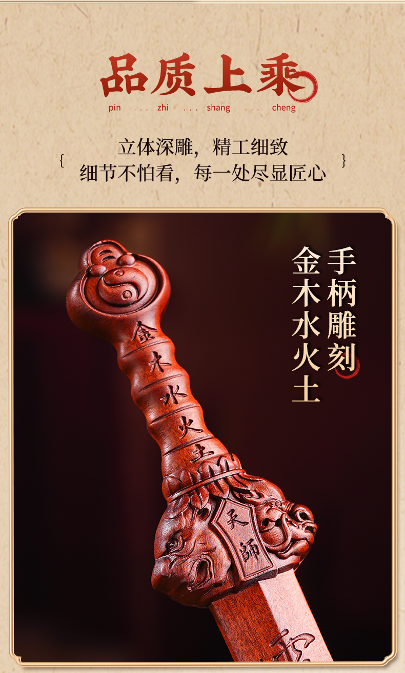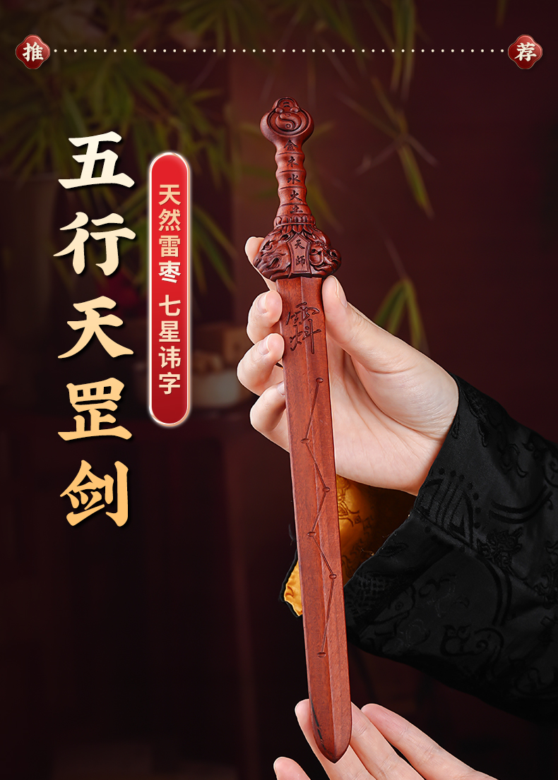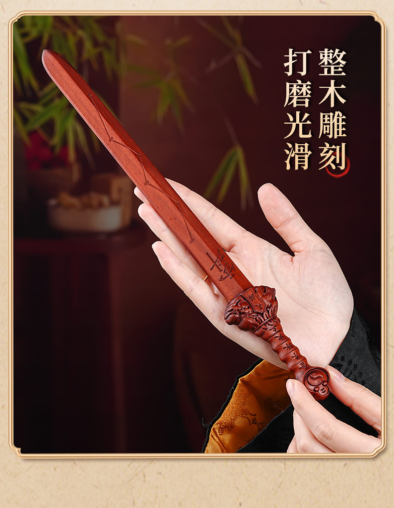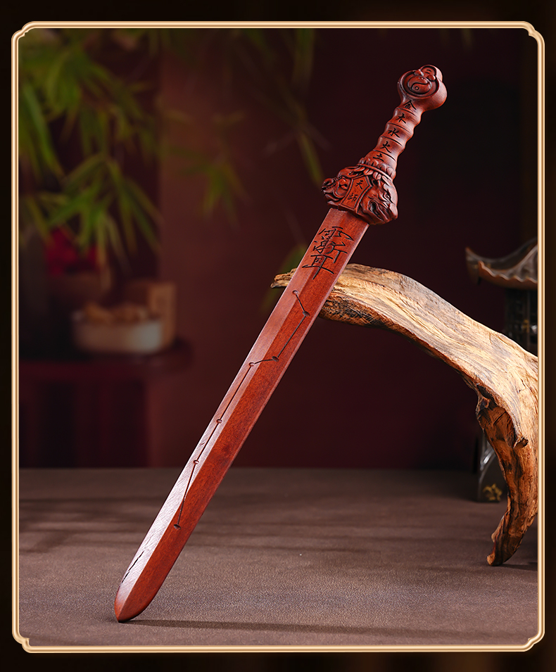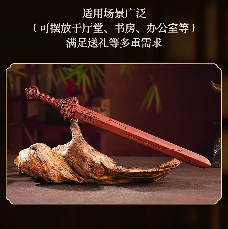 中式雷枣木剑饰摆件五行天罡剑手把件桌面文创工艺品