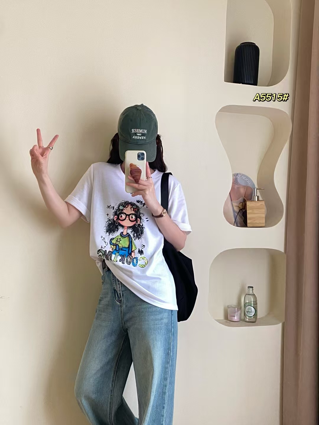 5515# 减龄眼镜女孩大版T恤 面料是超舒服的纯棉,透气吸汗 给肌肤最温柔的呵护