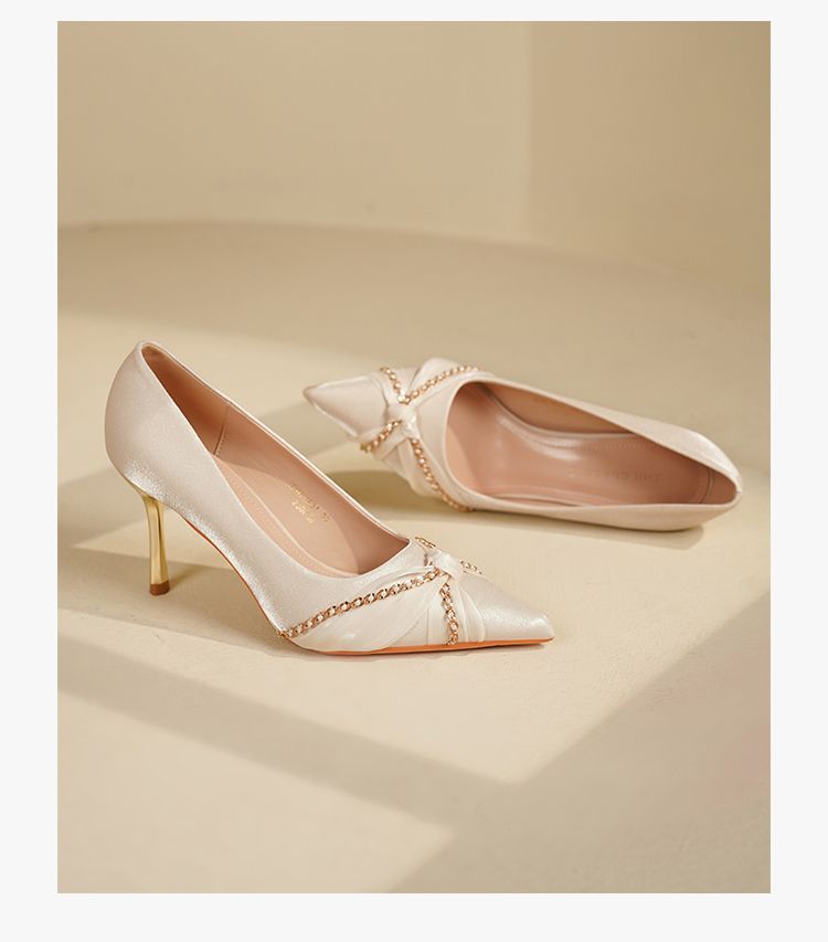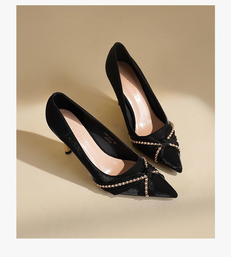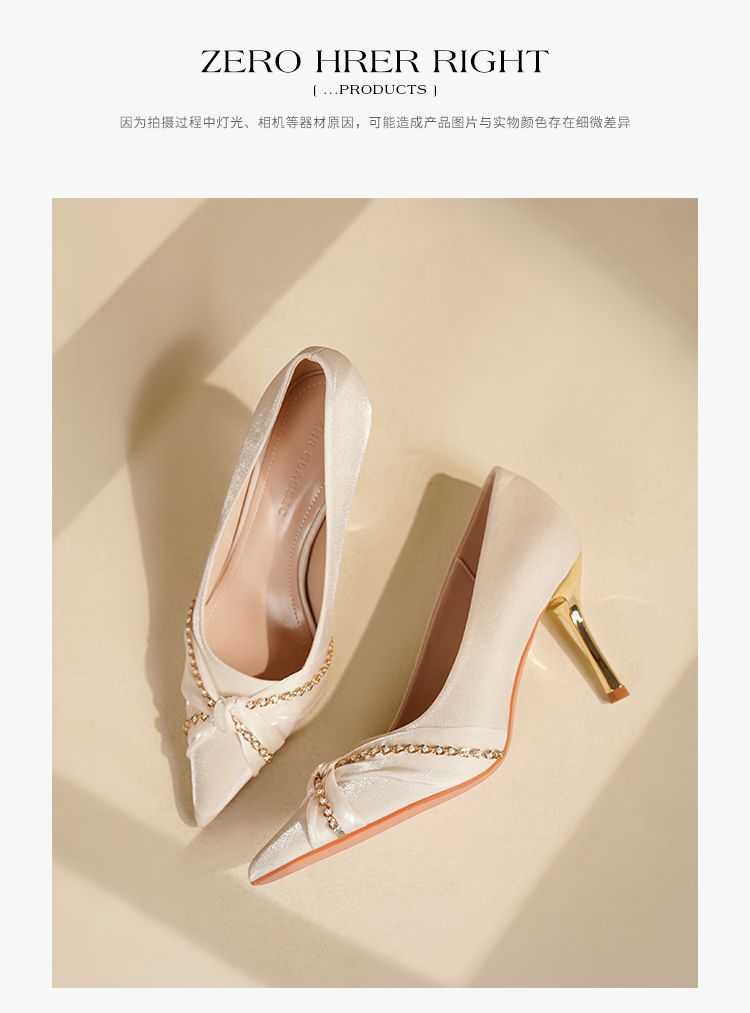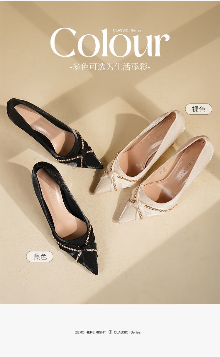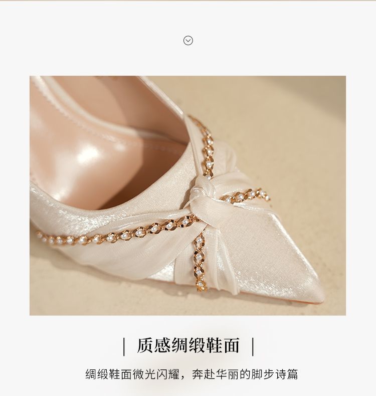 ZHR则则蝴蝶结珍珠链高跟鞋女鞋2025新款法式优雅气质浅口细跟鞋