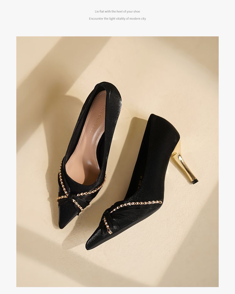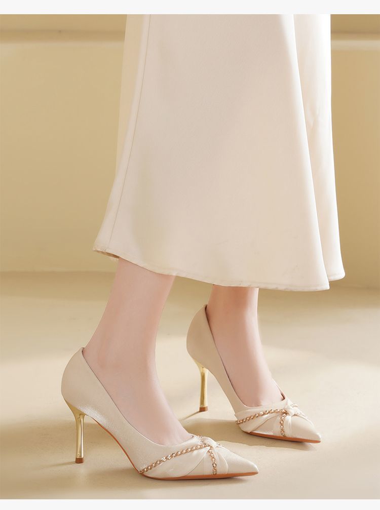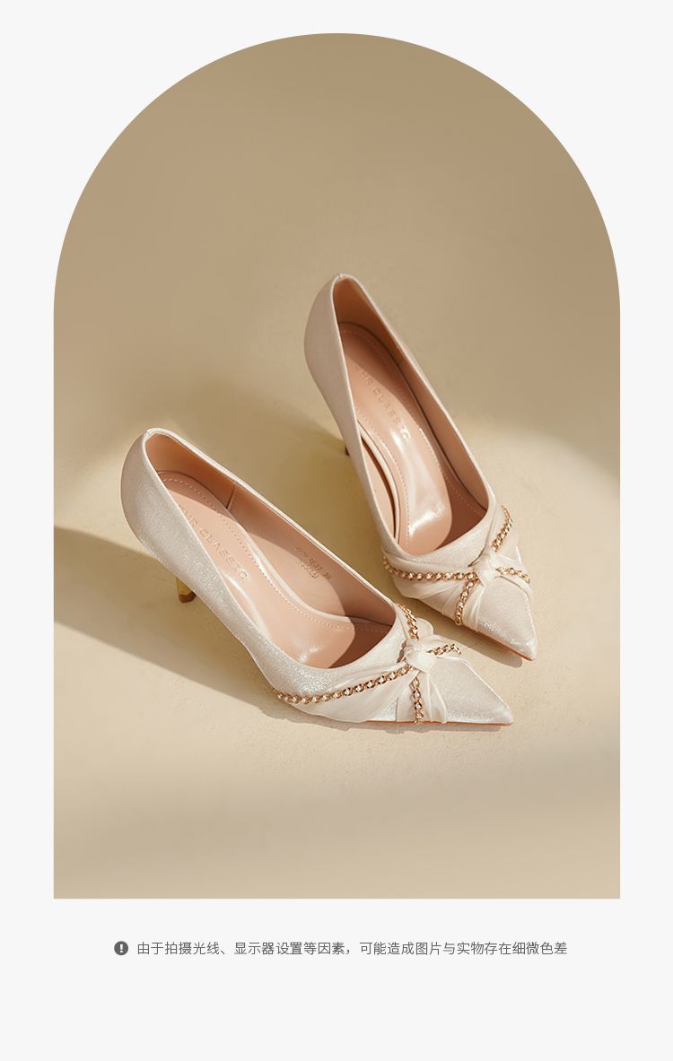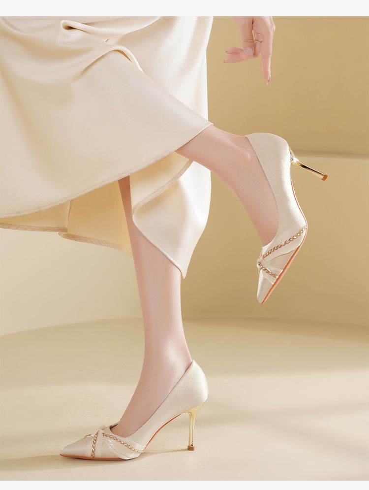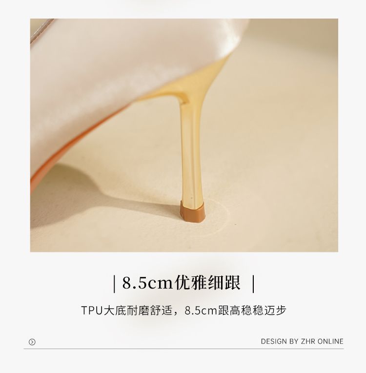 ZHR则则蝴蝶结珍珠链高跟鞋女鞋2025新款法式优雅气质浅口细跟鞋
