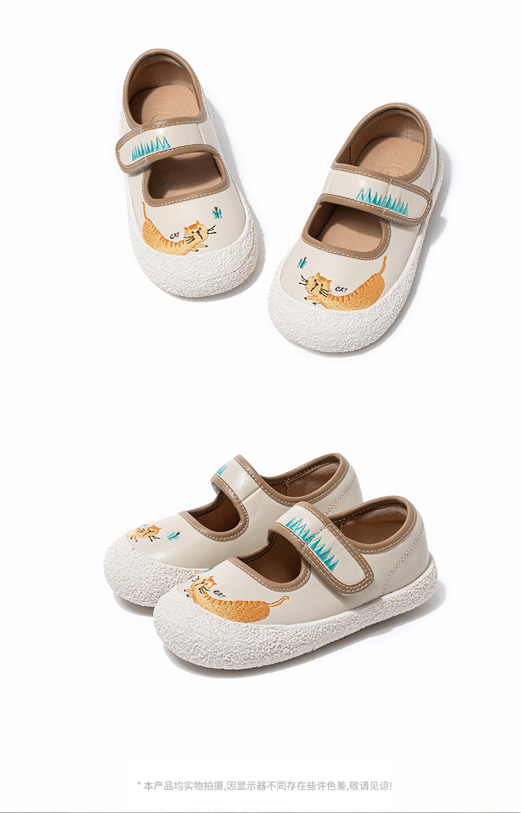 mrbaby童鞋皮鞋原创手绘刺绣女童鞋2023秋新款卡通圆头软底小宝鞋